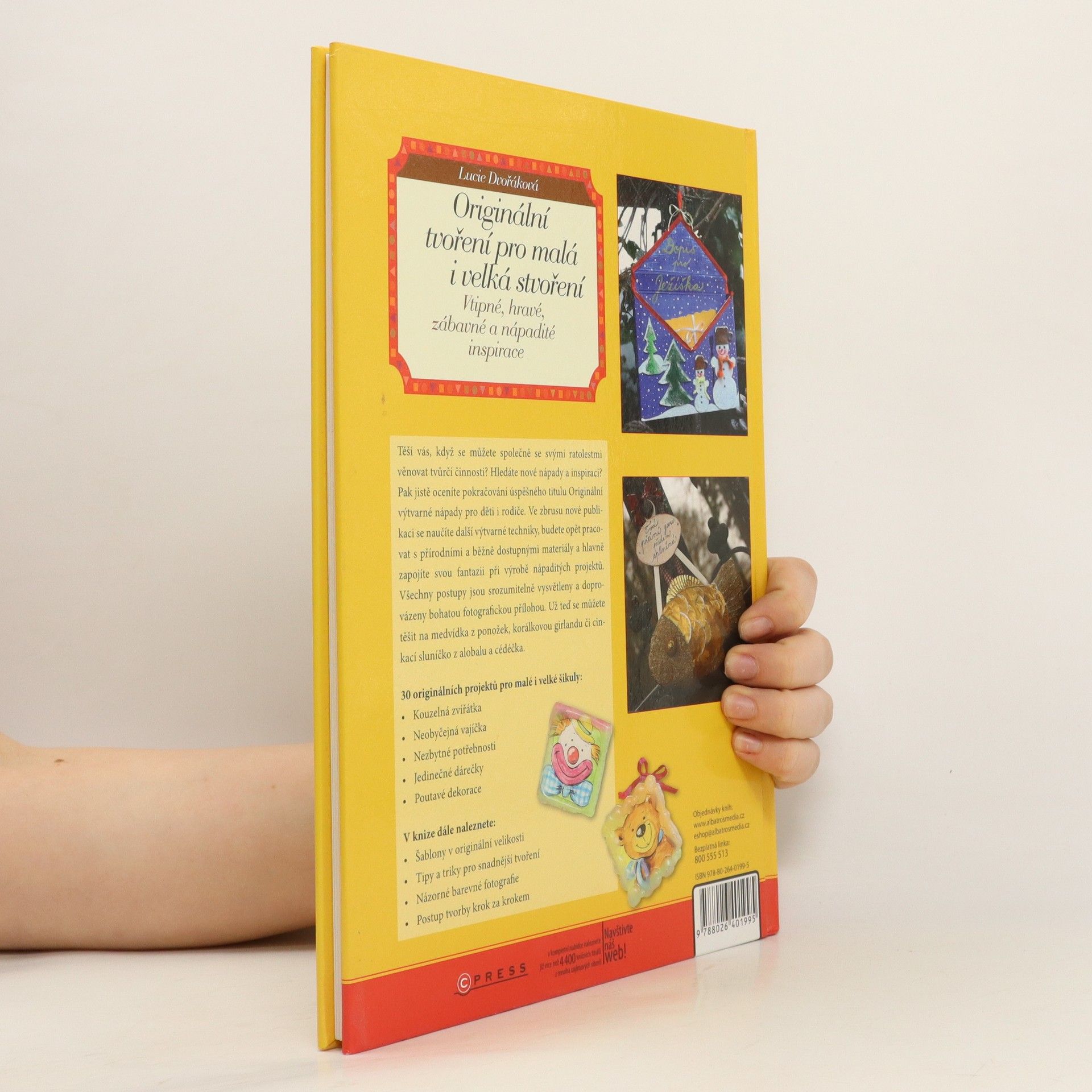 Těší vás, když se můžete společně s vašimi ratolestmi věnovat tvůrčí činnosti? Hledáte nové nápady a inspiraci? Pak jistě oceníte pokračování úspěšného titulu Originální výtvarné nápady pro děti i rodiče. Ve zbrusu nové publikaci se naučíte další výtvarné techniky, budete opět pracovat s přírodními a běžně dostupnými materiály a hlavně zapojíte svou fantazii při výrobě nápaditých projektů. Už teď se můžete těšit na medvídka z ponožek, korálkovou girlandu či cinkací sluníčko z alobalu a cédéčka.
