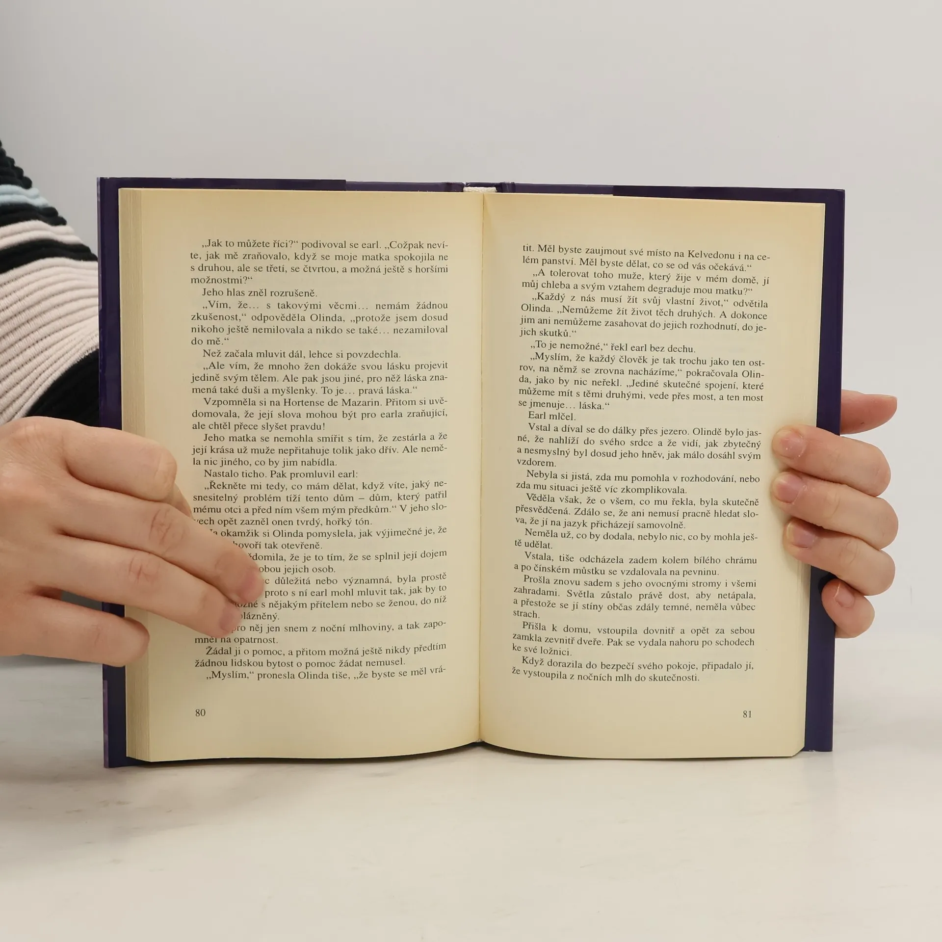 Vydělávat vlastníma rukama? Pro zchudlou lady Selwynovou je to neslýchaná představa. Naštěstí její hezká a chytrá dcera Olinda má jiný názor, jinak by umřely hlady. Přijme místo v jednom z nejskvělejších zámků Anglie, na Kelvedonu. Jejím úkolem je opravit tapiserie a gobelíny, samé vzácné historické kousky. Některé z nich pamatují sukničkářského krále Charlese II. , který právě na Kelvedonu našel konečně svou pravou životní lásku. Najde ji tam i Olinda? Hned první den svého pobytu se setká s mužem, který se vůbec netají svým zájmem o ni. Naneštěstí jde o milence ovdovělé paní domu, hraběnky z Kelvedonu a ta je známá svou žárlivostí. Pokud se o Felixových spádech dozví, určitě Olindu vyhodí, a ta přijde o mimořádnou příležitost pobývat v tak nádherném a cenném domě i o peníze, které tak nutně potřebuje pro svou nemocnou matku. A pak je tu ještě jeden důvod: hraběnčin syn, mladý lord, který se na Kelvedon vrací po dvou letech prožitých v cizině.