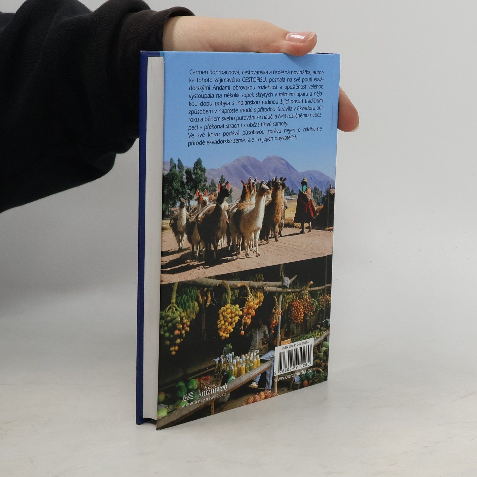 Pěšky za ekvádorskými indiány Carmen Rohrbachová, cestovatelka a úspěšná novinářka, poznává na své pouti ekvádorskými Andami obrovskou rozlehlost a opuštěnost velehor, vystoupá na několik sopek skrytých v mlžném hávu a nějakou dobu sdílí zdánlivě idylický každodenní život s indiánskou rodinou, jež žije ještě tradičním způsobem v naprosté shodě s přírodou. Autorka strávila v Ekvádoru půl roku a podařilo se jí podat působivou zprávu nejen o nádherné přírodě ekvádorské země, ale i jejích obyvatelích.