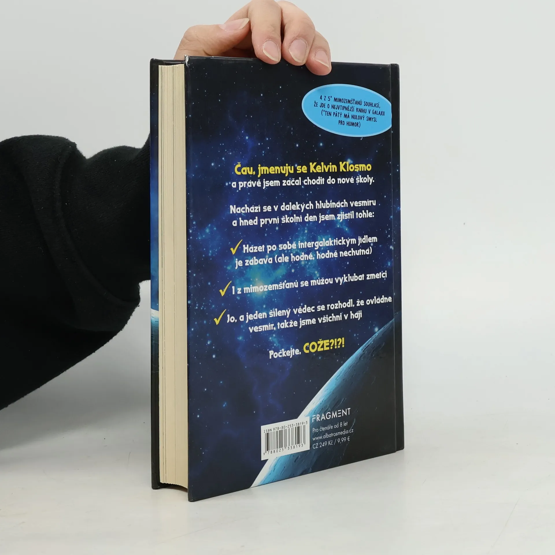 Kelvin Klosmo je nový žák ve škole, která je na vesmírné stanici daleko v hlubinách vesmíru. Chodí sem studenti všemožných tvarů, velikostí, zápachů a stupňů slizovosti. Je jasné, že jako syn dvou největších géniů na Zemi bude i on sám tím nejchytřejším klukem ve vesmíru. Nebo si to alespoň všichni myslí. Když jeden šílený vědec začne vyhrožovat, že ovládne vesmír, má Kelvin šanci dokázat, že v něm fakt něco je. Ale co když není ?!?