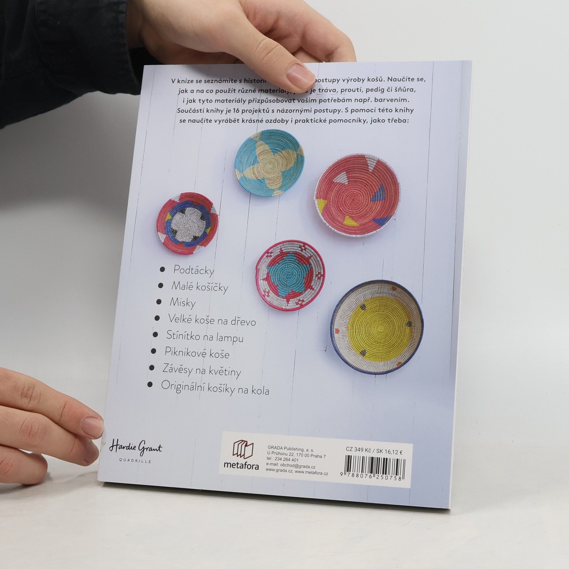 Naučte se vyrábět krásné košíkářské doplňky do domácnosti. V knize najdete 16 projektů od praktických kousků, například koš s víkem, závěsný květináč a prostírání, po ozdobné předměty včetně mís. Tabara N’Diaye vám ukáže, jak pracovat s trávou, provázkem, pedigem a šňůrou, naučí vás různé techniky pletení košů a seznámí s historií tohoto starého řemesla.
