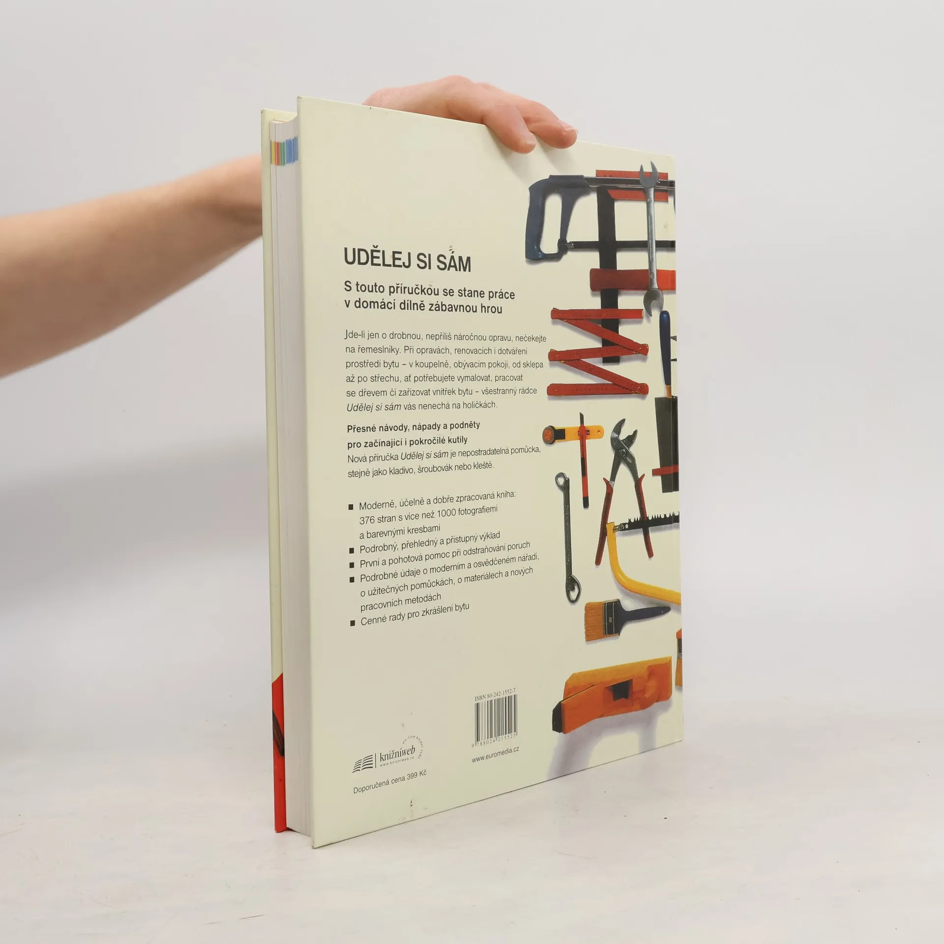 Podrobné postupy pracovních postupů ? Nářadí nástroje a přístroje ? Téměř 2000 barevných fotografií a kreseb Jedinečný pomocník do domácnosti, který bude vždy pohotově při ruce, poskytne první pomoc při běžných opravách a nejednu cennou radu. Vždycky je nepříjemné mít doma kapající kohoutek či topení, netěsnící okno, rozklíženou židlí nebo trhliny v omítce. S tímto rádcem máte šanci se takových problémů zbavit. Pak se můžete s klidem pustit i do složitějších řemesel, jako je tapetování, lakování, obkládání stěn a práce se dřevem nebo kovem. Naše příručka, která obsahuje 2000 fotografií, rad a návodů, vás ani v těchto případech nezklame. A věřte, že úpravy, které si ve svém bytě, domě či zahradě provedete sami, vám přinesou radost a pocit uspokojení. Váz., 376 stran, 20,4 x 27,7 cm, celobarevná publikace