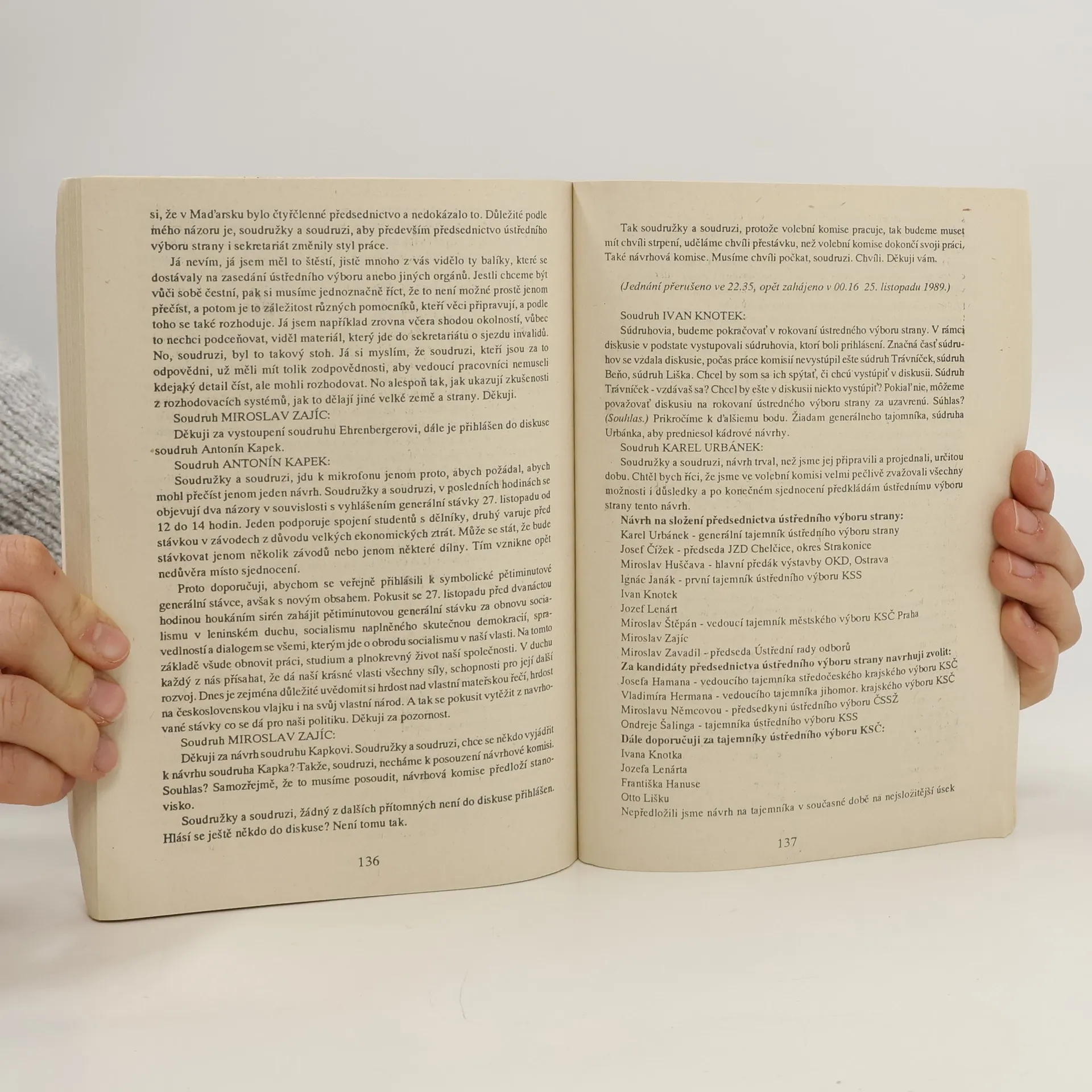 Úplné znění tajných stenografických záznamů z posledních plenárních zasedání ÚV KSČ v listopadu 1989. Čtení, které se vyrovná nejnapínavější detektivce.