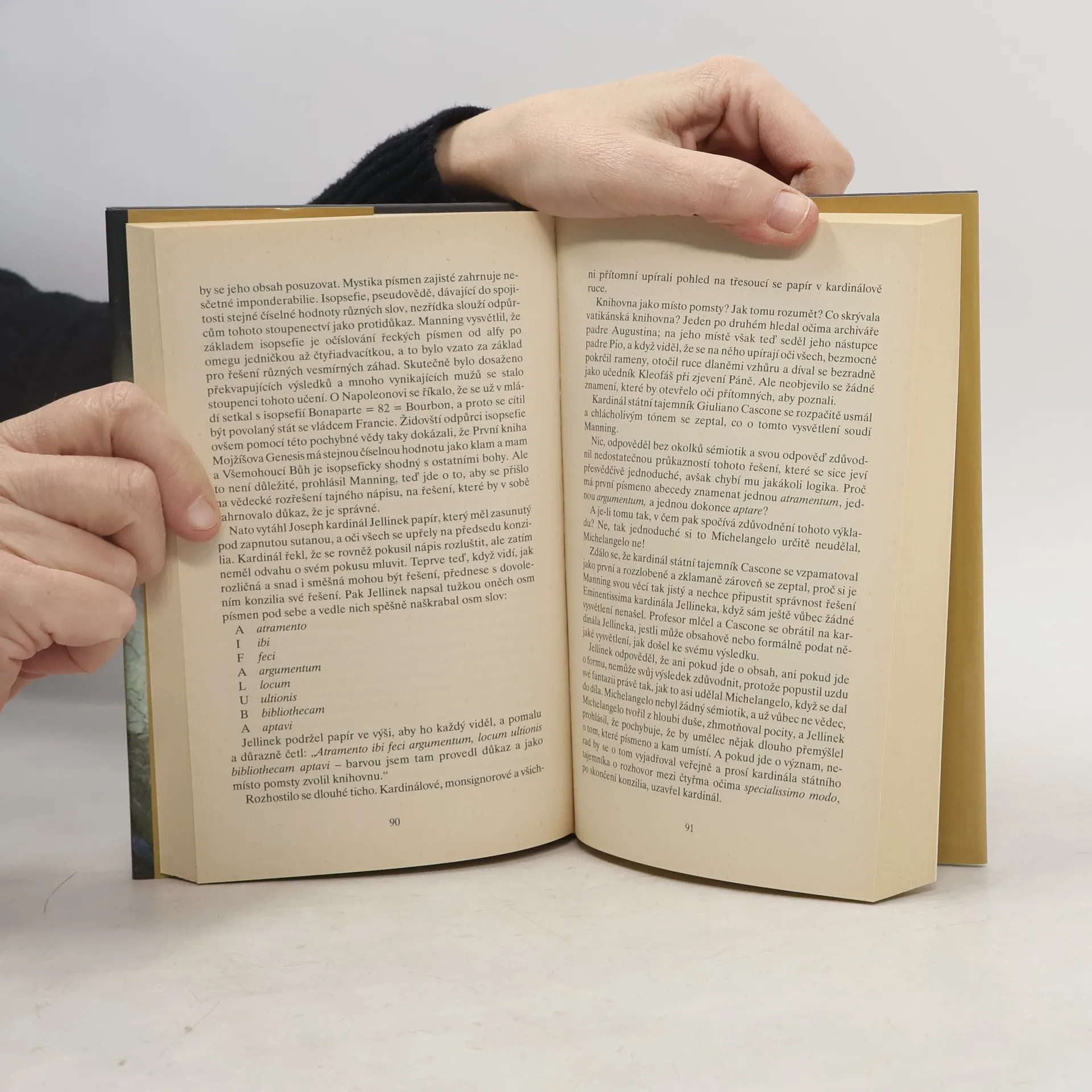 Při restaurování Michelangelových světoznámých fresek v Sixtinské kapli ve Vatikánu je objeven záhadný nápis. Nález vzbudí pozornost především církevních hodnostářů, kteří se snaží mysteriózní rébus vyluštit. Od toho okamžiku stíhá jedna záhada druhou. Kdokoli se přiblíží k řešení, zemře, aniž svůj poznatek stačí předat dál. Chtěl se snad Michelangelo krátkým nápisem ABULAFIA pomstít svým vatikánským chlebodárcům? Podle interpretace jednoho starého mnicha ukrývají záhadná písmena odkaz na středověkého mystika, jenž vyvrací existenci jednoho ze základních dogmat křesťanské víry – zázrak Kristova zmrtvýchvstání. Navíc vyjde najevo, že tuto interpretaci údajně znali již nacisté a vydatně ji využívali ve spolupráci s katolickým klérem. Zveřejnění obsahu nápisu by tedy mohlo vážně ohrozit autoritu církve…