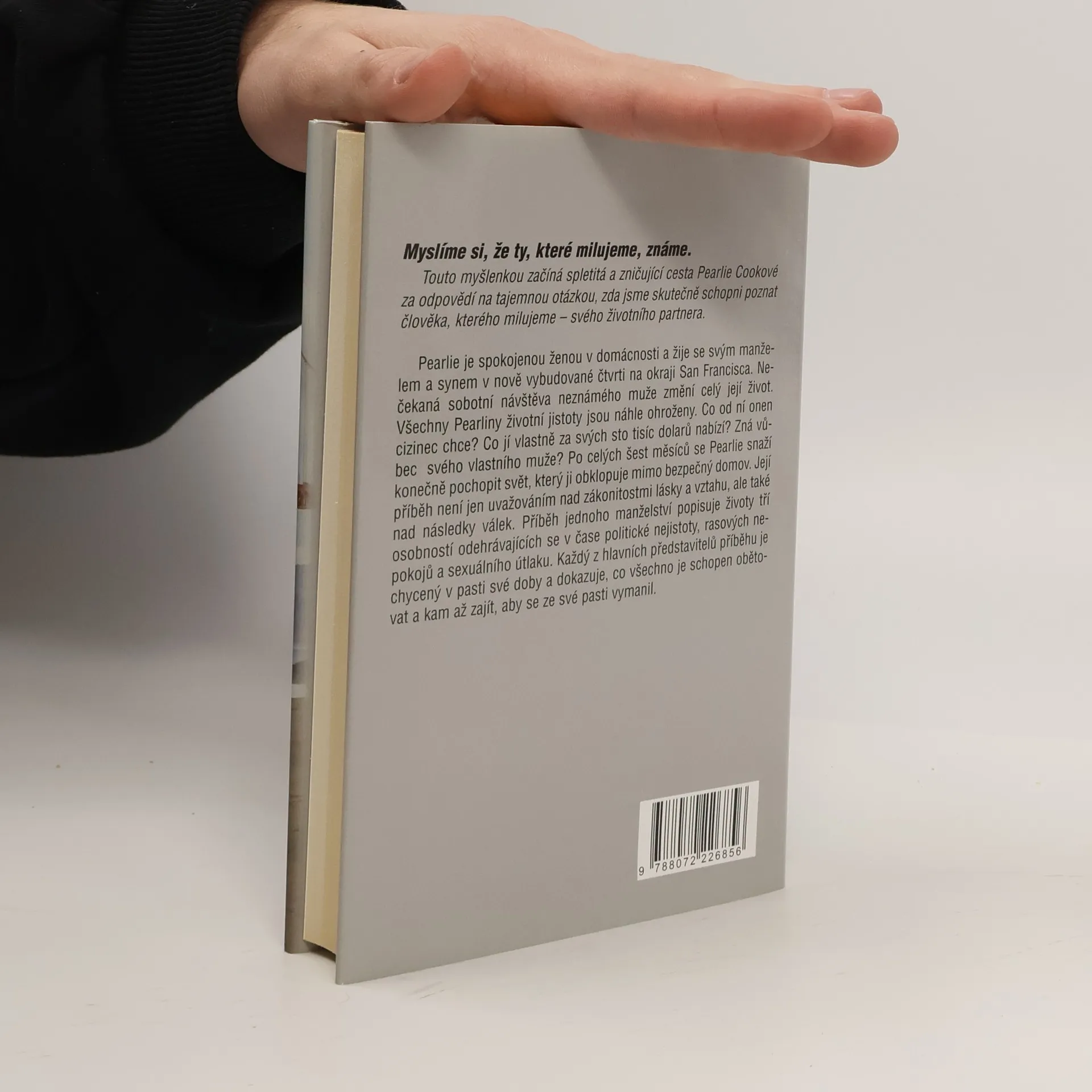"Myslíme si, že ty, které milujeme, známe.“ Touto myšlenkou začíná spletitá a zničující cesta Pearlie Cookové za odpovědí na tajemnou otázkou, zda jsme skutečně schopni poznat člověka, kterého milujeme - svého životního partnera. Pearlie je oddanou ženou v domácnosti a žije se svým manželem a synem v nově vybudované čtvrti na okraji San Francisca. Nečekaná sobotní návštěva neznámého muže změní celý její život. Všechny Pearliny životní jistoty jsou náhle ohroženy. Co od ní onen cizinec chce? Co jí vlastně za svých sto tisíc dolarů nabízí? Zná vůbec svého vlastního muže? Po celých šest měsíců se Pearlie snaží konečně pochopit svět, který ji obklopuje mimo bezpečný domov. Její příběh není jen uvažováním nad zákonitostmi lásky a vztahu, ale také nad následky válek. Příběh jednoho manželství popisuje životy tří osobností odehrávajících se v čase politické nejistoty, rasových nepokojů a sexuálního útlaku. Každý z hlavních představitelů příběhu je chycený v pasti své doby a dokazuje, co všechno je schopen obětovat a kam až zajít, aby se ze své pasti vymanil.