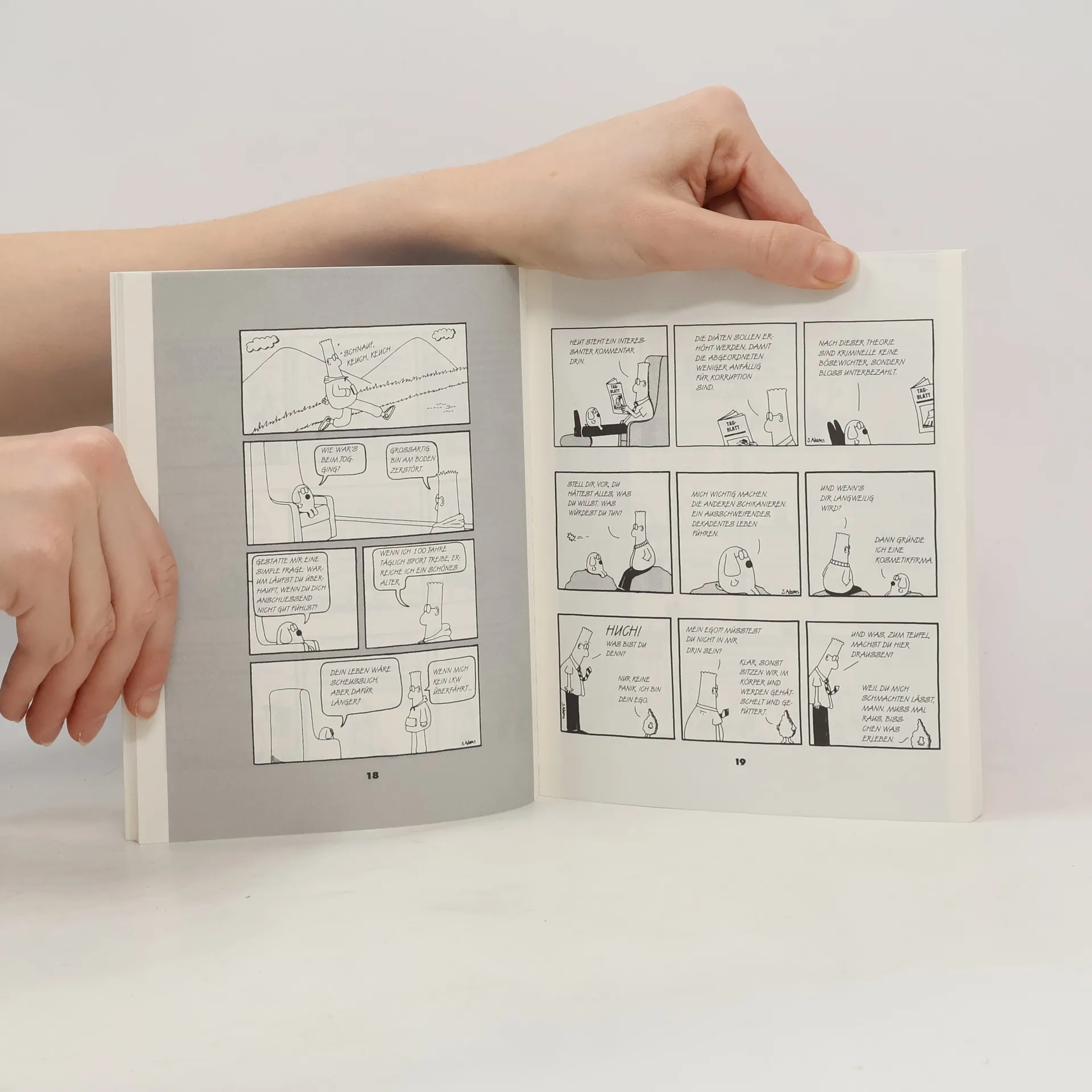 Wer hätte gedacht, daß trister Büroalltag den Gegenstand für einen famosen Comic-Strip abgeben würde? Vor 1989 niemand. Dann stellte Scott Adams seine Serie „Dilbert“ vor. Dem amerikanischen Zeichner ist es gelungen, die Besonderheiten des Computerzeitalters, der Managementtheorien und des Beraterwesens in seinen Comic zu integrieren. Dilbert ist dadurch für diejenigen zum Idol geworden, die unter solchen Bedingungen arbeiten – also für fast alle. Wir präsentieren eine Auswahl der Werktags- und Sonntagsfolgen.