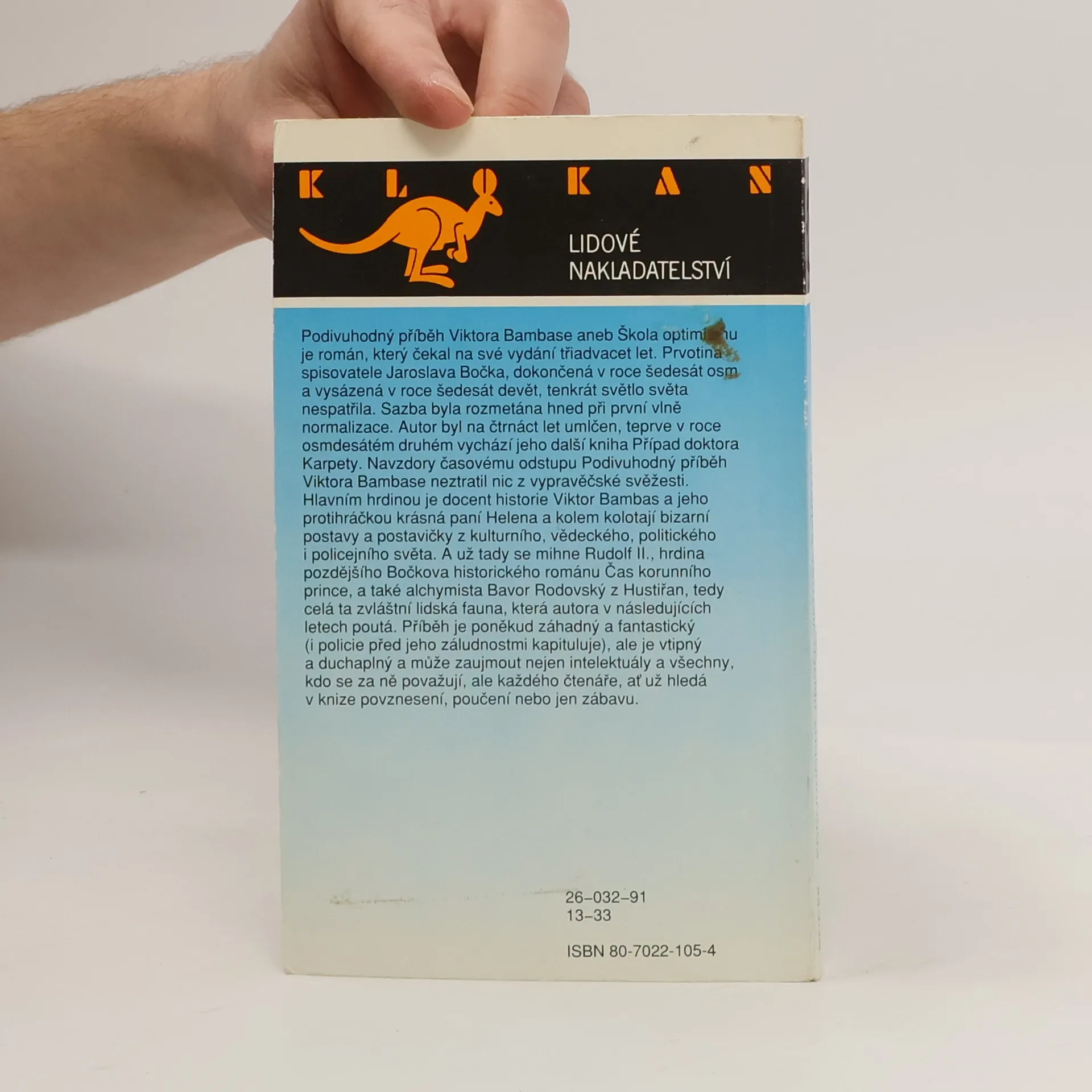 Podivuhodný příběh Viktora Bambase aneb Škola optimismu Zábavně a inteligentně napsaný příběh historika, který při svých bádáních objeví recept alchymisty na smrtící kulku a nápoj lásky. V roce 1969 měl vyjít román s fantastickými prvky Podivuhodný příběh Viktora Bambase aneb Škola optimismu, avšak vydání bylo na poslední chvíli zakázáno. Jde o příběh učitele a kulinářského labužníka Bambase, do jehož života rázně zasáhne objev prastaré knihy s alchymistickými recepty. Patrná je autorova radost z vyprávění, ostatně autor sám do děje často promlouvá jakožto všemocný vypravěč, který musí pečlivě volit, jakou část příběhu čtenáři odhalí a jakým způsobem.
