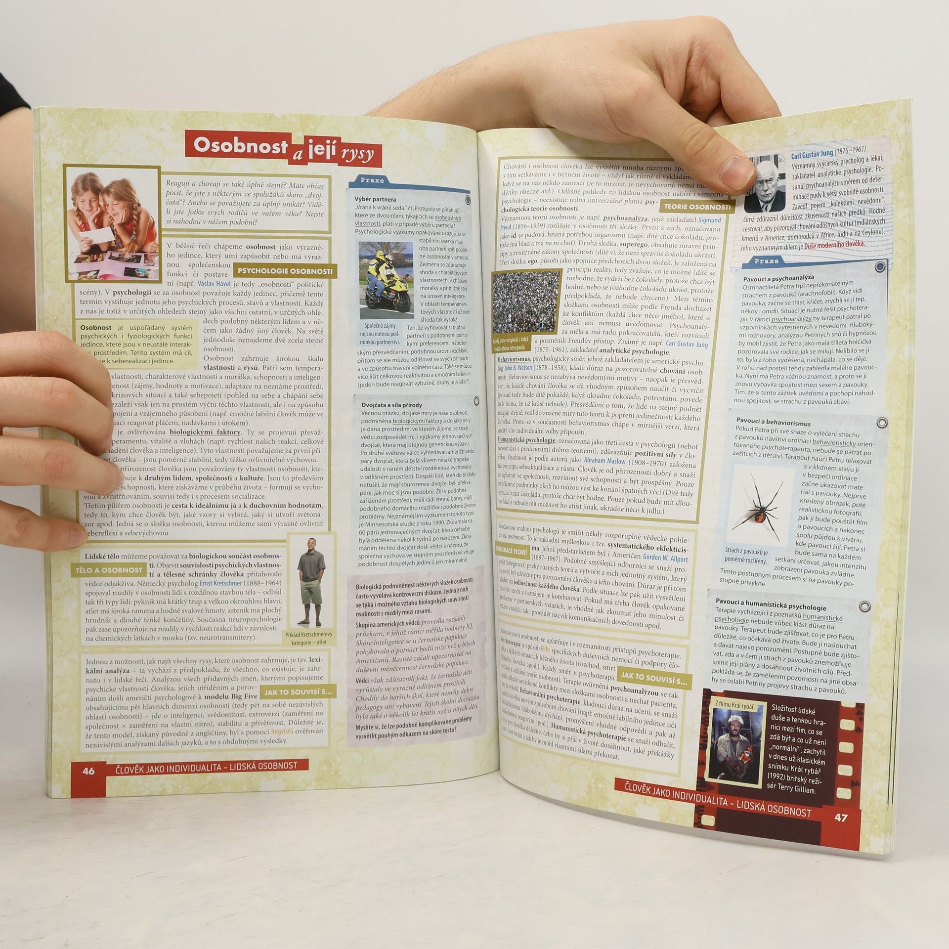 Učebnice přistupuje novým způsobem k problematice společenských věd, představujíc učivo s ohledem na každodenní souvislosti a požadavky současných studentů. Texty jsou zpracovány a kontrolovány vysokoškolskými odborníky, což zajišťuje jejich spolehlivost a faktickou přesnost. Je zpracována podle požadavků RVP pro gymnaziální a střední odborné vzdělávání, což umožňuje její využití v obou typech škol. Naplňuje legislativní požadavky jak po stránce obsahu, tak rozvíjením klíčových kompetencí žáků, zohledněním mezipředmětových vztahů a průběžným zařazováním průřezových témat. Učebnice je rozdělena do čtyř tematických celků, které se zaměřují na klíčové výkladové problémy: poznávání skutečnosti, vývoj člověka a vlivy na něj, individuální odlišnost a psychologické základy, a pravidla soužití s druhými. Tyto celky jsou dále děleny na kapitoly a podkapitoly, což odpovídá struktuře pracovního sešitu. Podkapitoly, jako základní jednotky učebnice, jsou buď jednostránkové, nebo dvoustránkové, odpovídající časové dotaci. Učebnice je koncipována tak, aby zajišťovala provázanost jednotlivých podkapitol a zároveň usnadnila odlišení povinného učiva od doplňujících informací.