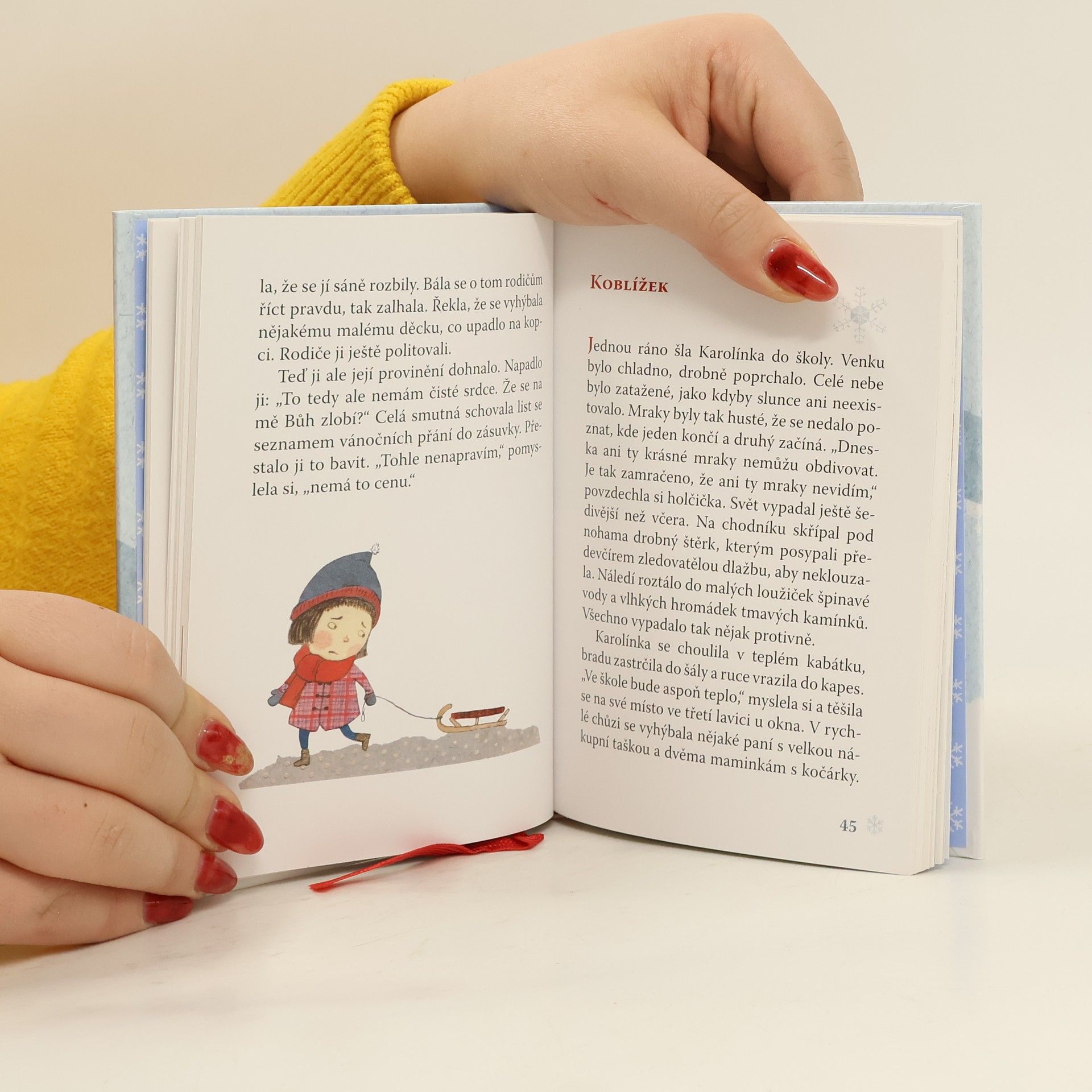 Holčička Karolínka miluje sníh a sáňkování. Vánoce jsou přede dveřmi, ale pořád nesněží. Může souviset loňská lež s letošním sněhem? Dá se s tím něco dělat? Kromě Vánoc se ještě blíží první vystoupení v hudební škole a je zapotřebí vyrobit vánočních dárky rodičům.