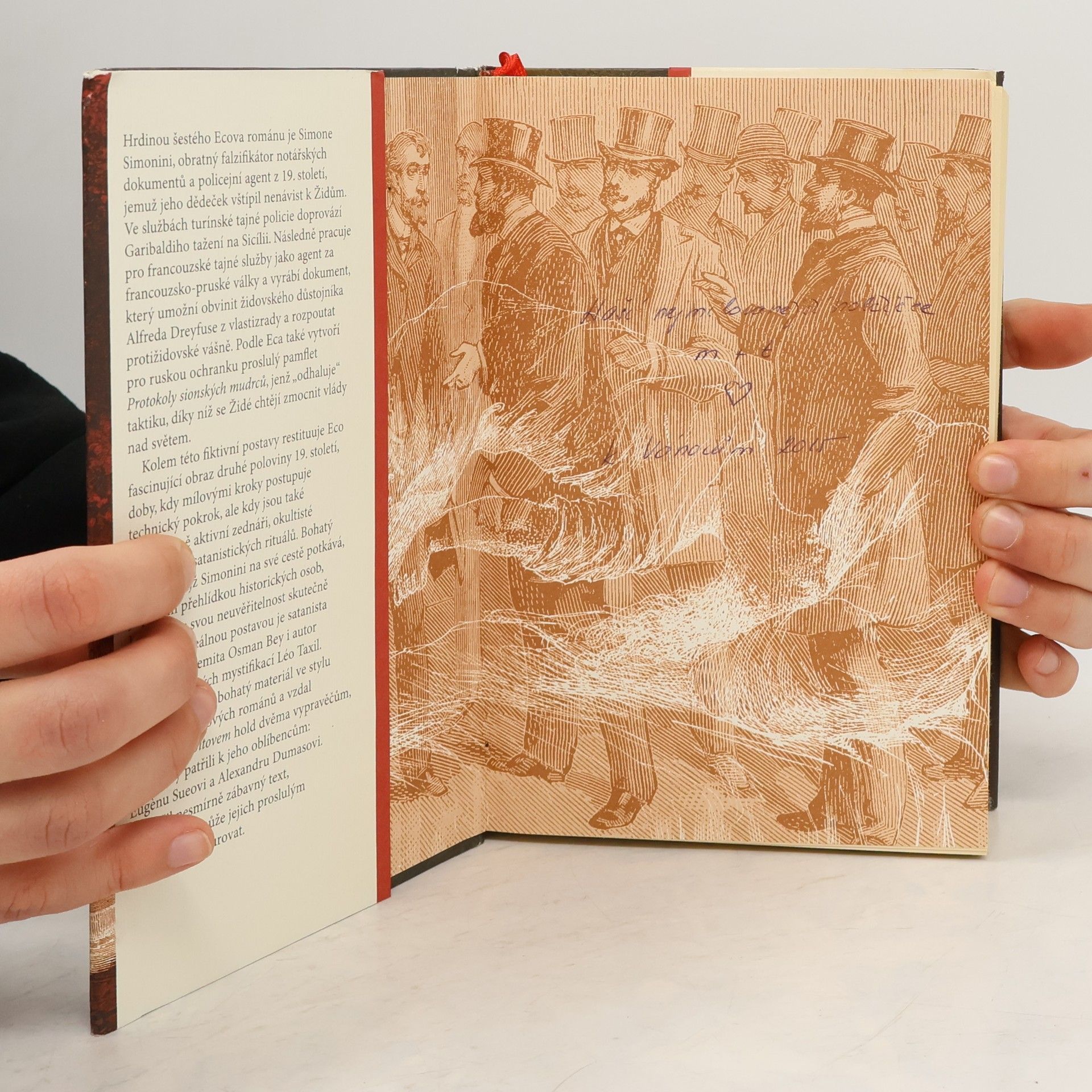 V románu-labyrintu proslulého autora se příběh s detektivní zápletkou prolíná s literaturou faktu. Ve svém bytě v nevábné pařížské čtvrti se v březnu 1897 probouzí starší muž a snaží se rozpomenout, kdo vlastně je. Metodou doktora Freuda, se kterým párkrát pojedl, si začíná vybavovat vlastní minulost italského a později francouzského policejního konfidenta, autora fiktivního konspiračního plánu, který pak v rukou jiných začal žít vlastním životem. Téměř všechny postavy (např. Alexandre Dumas) jsou historické, neméně skutečný je i hrdinou sepsaný pamflet.