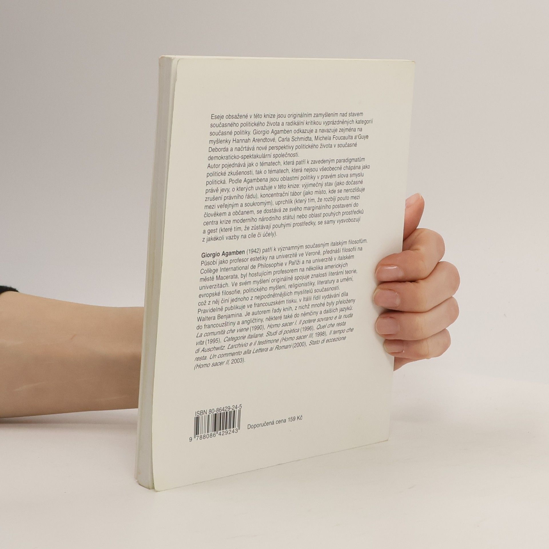 Kniha významného italského filosofa je souborem několika esejí originálním způsobem se zamýšlejících nad stavem současného politického života a radikální kritikou vyprázdněných kategorií současné politiky. Autor ve svém úvodním Upozornění zdůvodňuje, proč se politika dostává do podřízeného postavení vůči náboženství, ekonomice a právu tím, že když si přestávala být vědoma svého ontologického zařazení, přestala se vyrovnávat se změnami, které postupně vyprázdnily její kategorie a pojmy. Na stránkách esejí jsou původně politická paradigmata sledována v rámci zkušeností a jevů, které obvykle nejsou pokládány za politické...