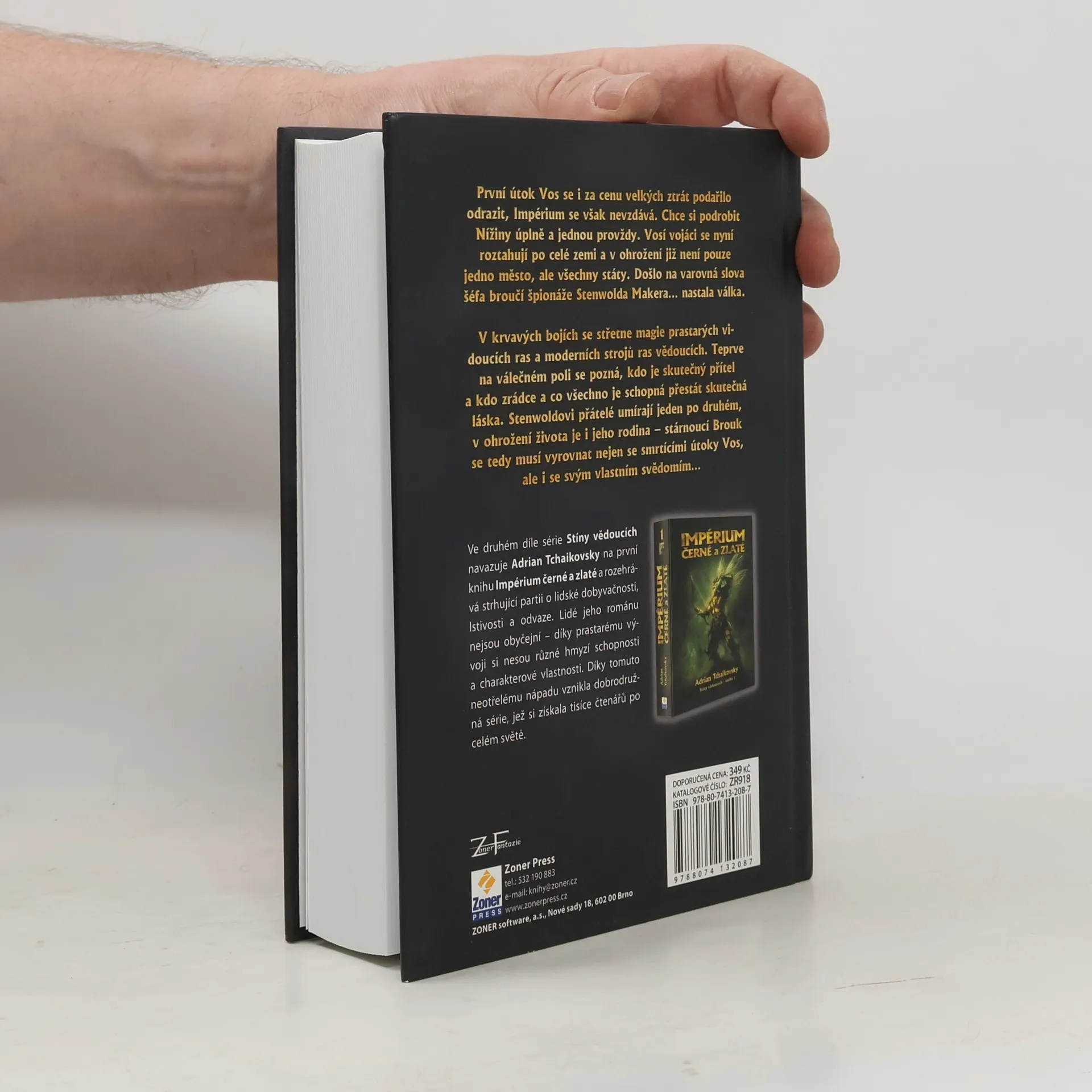 Strhující příběh o světě lidí s hmyzími schopnostmi a vlastnostmi. První útok Vos se i za cenu velkých ztrát podařilo odrazit, Impérium se však nevzdává. Vosí císař má smělé plány a rozhodl se podrobit si Nížiny úplně a jednou provždy. Jeho vojáci se nyní roztahují po celé zemi a v ohrožení již není pouze jedno město, ale všechny státy. Došlo na varovná slova šéfa broučí špionáže Stenwolda Makera… nastala válka. V krvavých bojích se střetne magie prastarých vidoucích ras a moderních strojů ras vědoucích. A až na válečném poli se pozná, kdo je skutečný přítel a kdo zrádce a co všechno je schopná přestát skutečná láska. Národy Nížin jsou nuceny zapomenout na stará příkoří a spojit své síly. Ale je možné, aby Kudlanky bojovaly po boku nenáviděných Pavouků? Stenwoldovi přátelé umírají jeden po druhém, v ohrožení života je i jeho rodina – stárnoucí Brouk se tedy musí vyrovnat nejen se smrtícími útoky Vos, ale i se svým vlastním svědomím… Ve druhém díle série Stíny vědoucích rozehrává Adrian Tchaikovsky strhující partii o lidské dobyvačnosti, lstivosti a odvaze. Lidé jeho románu nejsou obyčejní – díky prastarému vývoji si nesou různé hmyzí schopnosti a vlastnosti. Agresivní Vosy tedy dovedou ze svých rukou vysílat žihadla, elegantní Vážky mohou létat a záhadní můří lidé vidí výborně ve tmě. Díky tomuto neotřelému nápadu vznikla dobrodružná série, jež si získala tisíce čtenářů po celém světě.