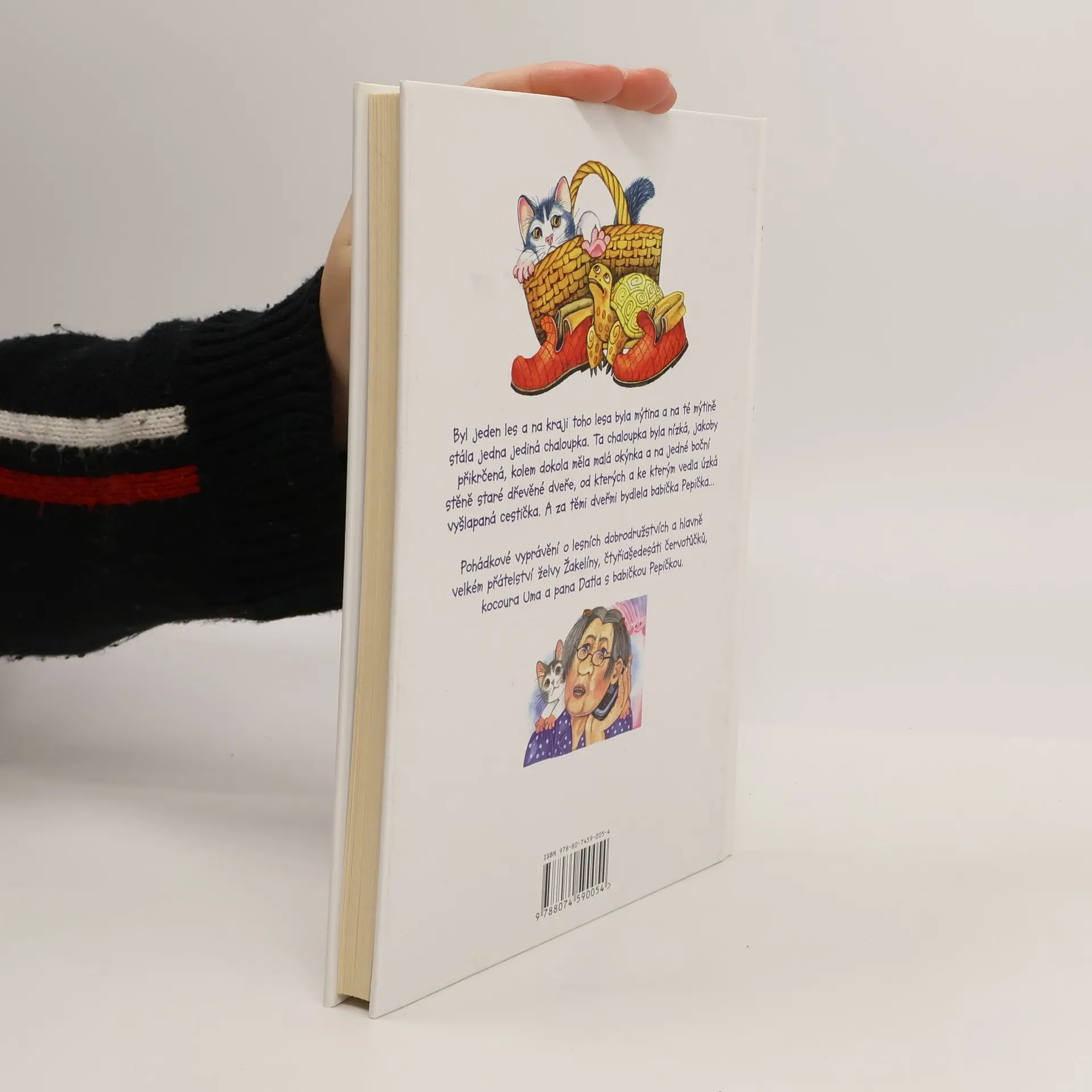 Byl jeden les a na kraji toho lesa byla mýtina a na té mýtině stála jedna jediná chaloupka. Ta chaloupka byla nízká, jakoby přikrčená, kolem dokola měla malá okýnka a na jedné boční stěně staré dřevěné dveře, od kterých a ke kterým vedla úzká vyšlapaná cestička. A za těmi dveřmi bydlela babička Pepička... Nakladatelská anotace Pohádkové vyprávění o lesních dobrodružstvích a hlavně velkém přátelství želvy Žakelíny, čtyřiašedesáti červotůčků, kocoura Uma a pana Datla s babičkou Pepičkou. Pro děti od 5 let