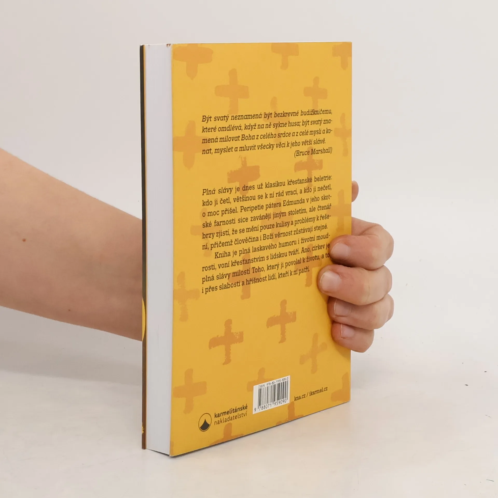 Být svatý neznamená být bezkrevné budižkničemu, které omdlévá, když na ně sykne husa; být svatý znamená milovat Boha z celého srdce a z celé mysli a konat, myslet a mluvit všecky věci k jeho větší slávě. Plná slávy je dnes už klasikou křesťanské beletrie: kdo ji četl, většinou se k ní rád vrací, a kdo ji nečetl, o moc přišel. Peripetie patera Edmunda v jeho skotské farnosti sice zavání jiným stoletím, ale čtenář brzy zjistí, že se mění pouze kulisy a problémy k řešení, přičemž člověčina i Boží věrnost zůstávají stejné. Kniha je plná laskavého humoru i životní moudrosti, voní křesťanstvím s lidskou tváří. Ano, církev je plná slávy milostí Toho, který ji povolal k životu, a to i přes slabosti a hříšnost lidí, kteří k ní patří.