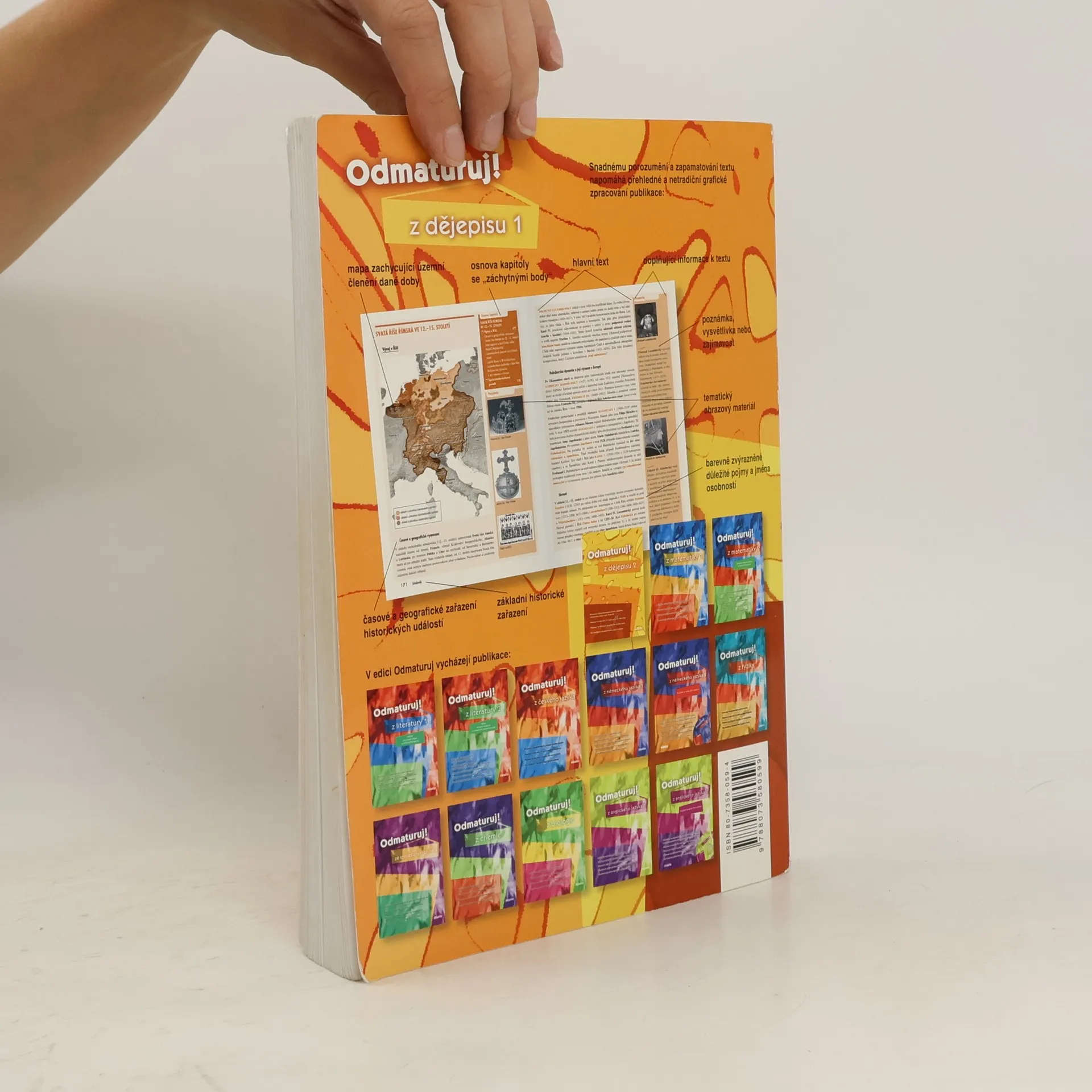 Poutavá učebnice určená k přípravě na maturitu (i k nové tzv. celostátní podobě maturity) a k přijímacím zkouškám na vysoké školy. Obsahuje část středoškolské látky dějepisu, a to vývoj historie od pravěku po raný novověk. Kniha je přehledně zpracována do 4 celků dle historických epoch – pravěk, starověk, středověk, raný novověk, které jsou dále členěny na menší kapitoly. Snadnou orientaci v textu podporuje grafické odlišení ústředního textu od doplňujících poznámek a zvýraznění důležitých jmen