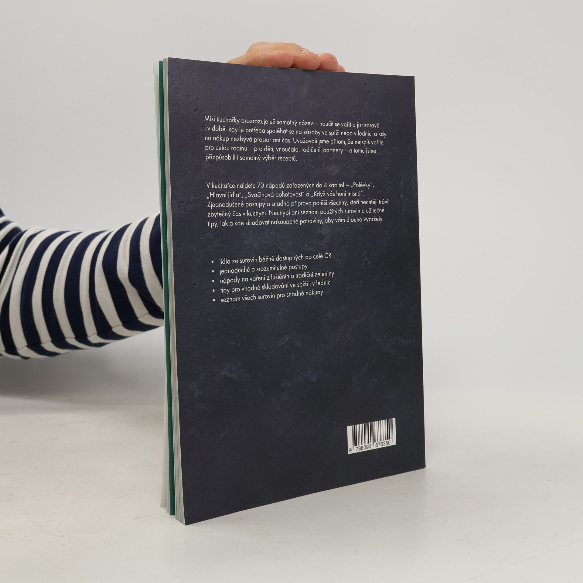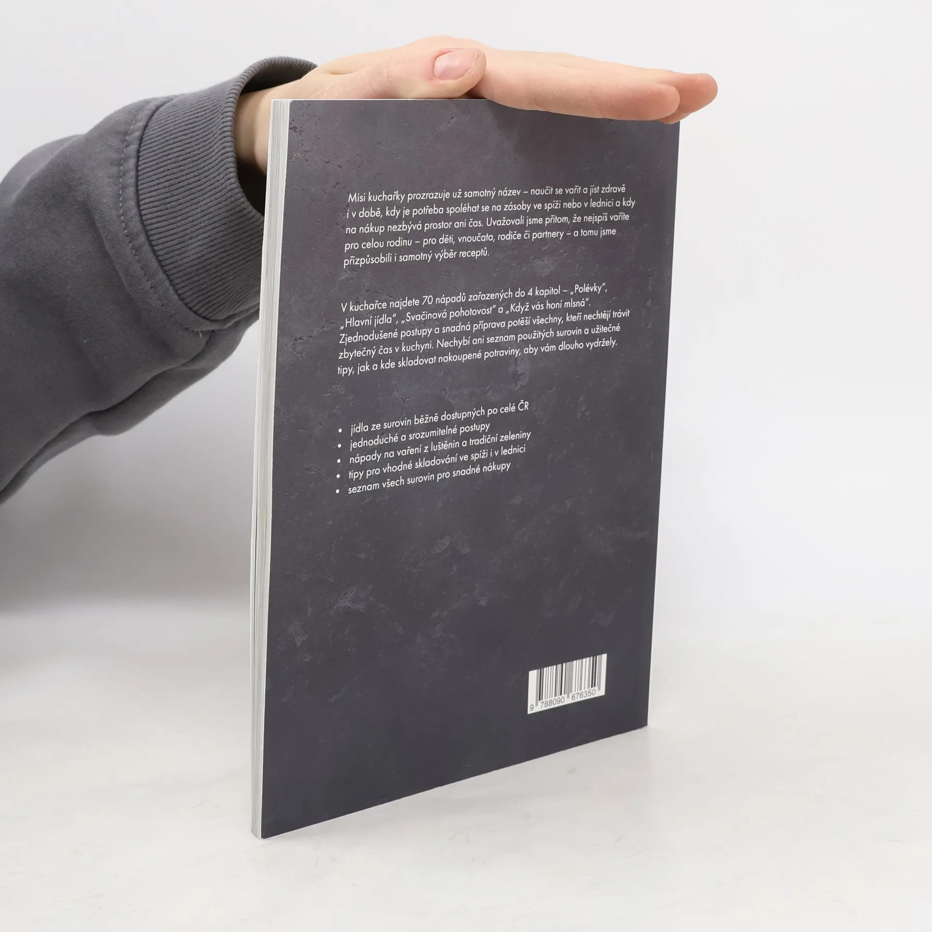 Přišli jste domů z práce a nechce se vám na nákup? Právě vám volal někdo z rodiny, že se neplánovaně staví na sobotní oběd a vy byste jim rádi uvařili domácí stravu? Mise této kuchařky je jasná – naučit se vařit a jíst zdravě i v době, kdy je potřeba spoléhat se na zásoby ve spíži nebo lednici a na nákup prostě není prostor ani čas. Dali jsme dohromady 70 nápadů na opravdová jídla, která v kuchyni připravíte během chvíle a při vaření vám můžou pomáhat i děti. V kuchařce najdete 4 kategorie – polévky, hlavní jídla, svačinovou pohotovost a recepty pro chvíle, kdy vás honí mlsná. Tentokrát jsme si posvítili na luštěniny, zdravější varianty dětských jídel, ryby, maso a také lehčí bezmasé varianty tradičních receptů. Kromě toho vás naučíme upéct nehnětený špaldový chléb, bulky k snídani nebo vyrobit kakaovo-tvarohový dezert ze 4 surovin.