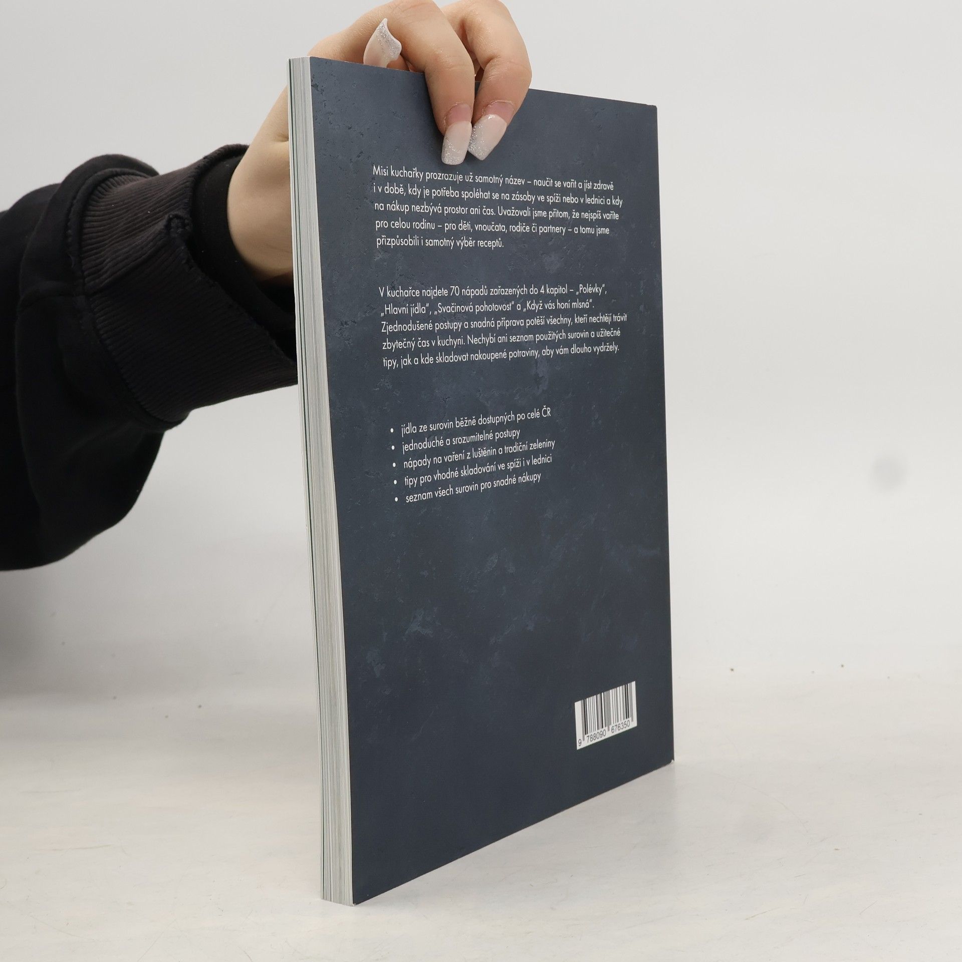 Přišli jste domů z práce a nechce se vám na nákup? Právě vám volal někdo z rodiny, že se neplánovaně staví na sobotní oběd a vy byste jim rádi uvařili domácí stravu? Mise této kuchařky je jasná – naučit se vařit a jíst zdravě i v době, kdy je potřeba spoléhat se na zásoby ve spíži nebo lednici a na nákup prostě není prostor ani čas. Dali jsme dohromady 70 nápadů na opravdová jídla, která v kuchyni připravíte během chvíle a při vaření vám můžou pomáhat i děti. V kuchařce najdete 4 kategorie – polévky, hlavní jídla, svačinovou pohotovost a recepty pro chvíle, kdy vás honí mlsná. Tentokrát jsme si posvítili na luštěniny, zdravější varianty dětských jídel, ryby, maso a také lehčí bezmasé varianty tradičních receptů. Kromě toho vás naučíme upéct nehnětený špaldový chléb, bulky k snídani nebo vyrobit kakaovo-tvarohový dezert ze 4 surovin.