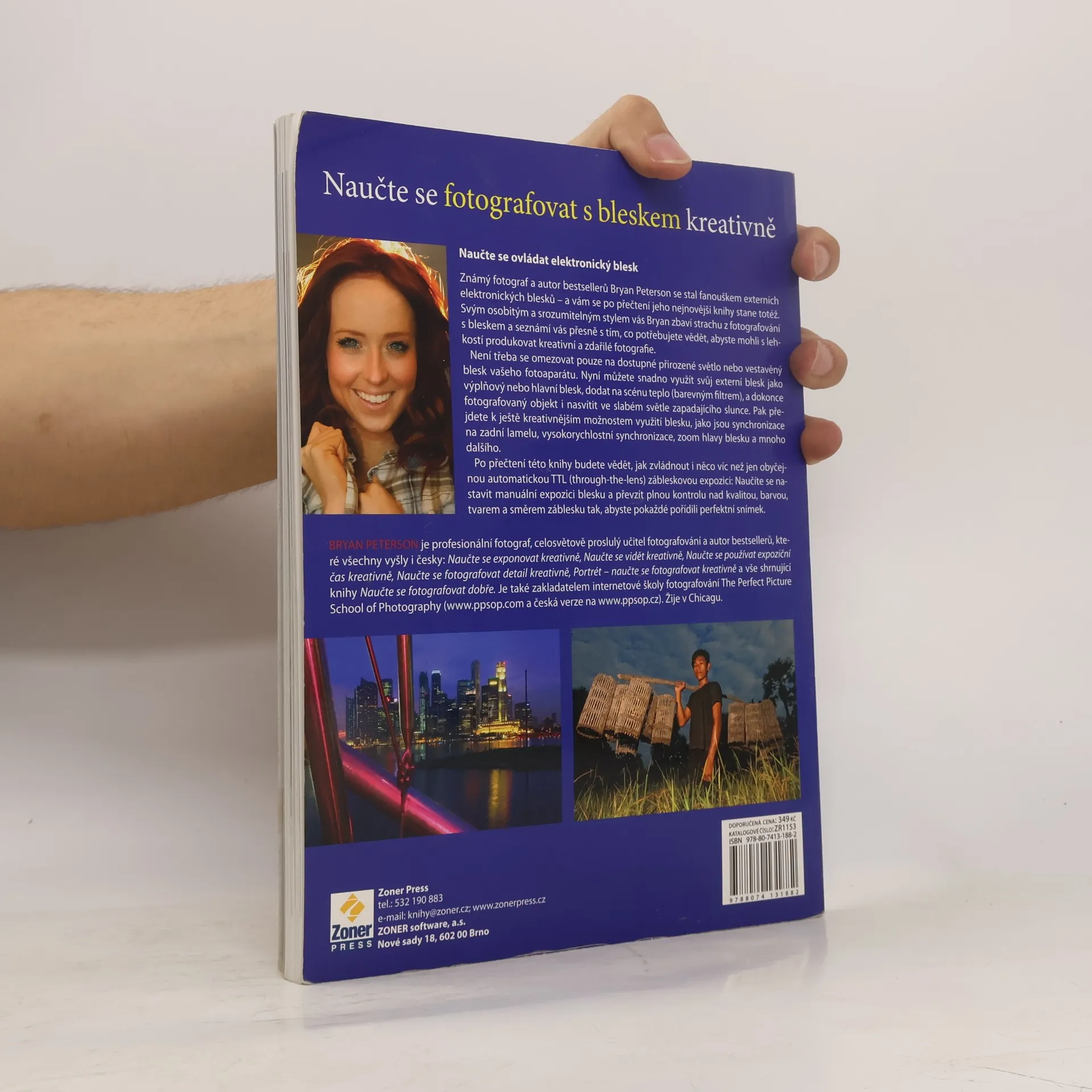 Fotografování s bleskem s Bryanem Petersonem. Knihy Bryana Petersona se vyznačují přístupem, který je snadno srozumitelný každému, kdo má zájem naučit se fotografovat. Jeho kniha Naučte se exponovat kreativně pomohla tisícům fotografů porozumět základům fotografie. A stejně tak i tato publikace věnovaná blesku dokáže nadchnout každého, kdo má z použití blesku obavy nebo blesk po počátečních nezdarech odložil. Autor se zaměřuje na použití externího blesku a předvádí jeho použití v celé řadě situací. Nesporným kladem knihy je to, že blesk používá v manuálním režimu – to je cesta, která vede ke správnému nastavení blesku i v situacích, kdy spolehnutí se na TTL měření nedává ty nejlepší výsledky. Zvládnete-li manuální nastavení blesku a poznáte-li, jak se váš blesk chová a jaké jsou jeho možnosti, bude pro vás fotografování i ve složitých světelných situacích snadné. V knize se seznámíte nejen se základy práce s bleskem a pochopíte, co se ukrývá za jeho směrným číslem, ale především se naučíte ovládat a řídit množství a kvalitu záblesku a okolního světla tak, abyste získali snímky profesionální kvality.