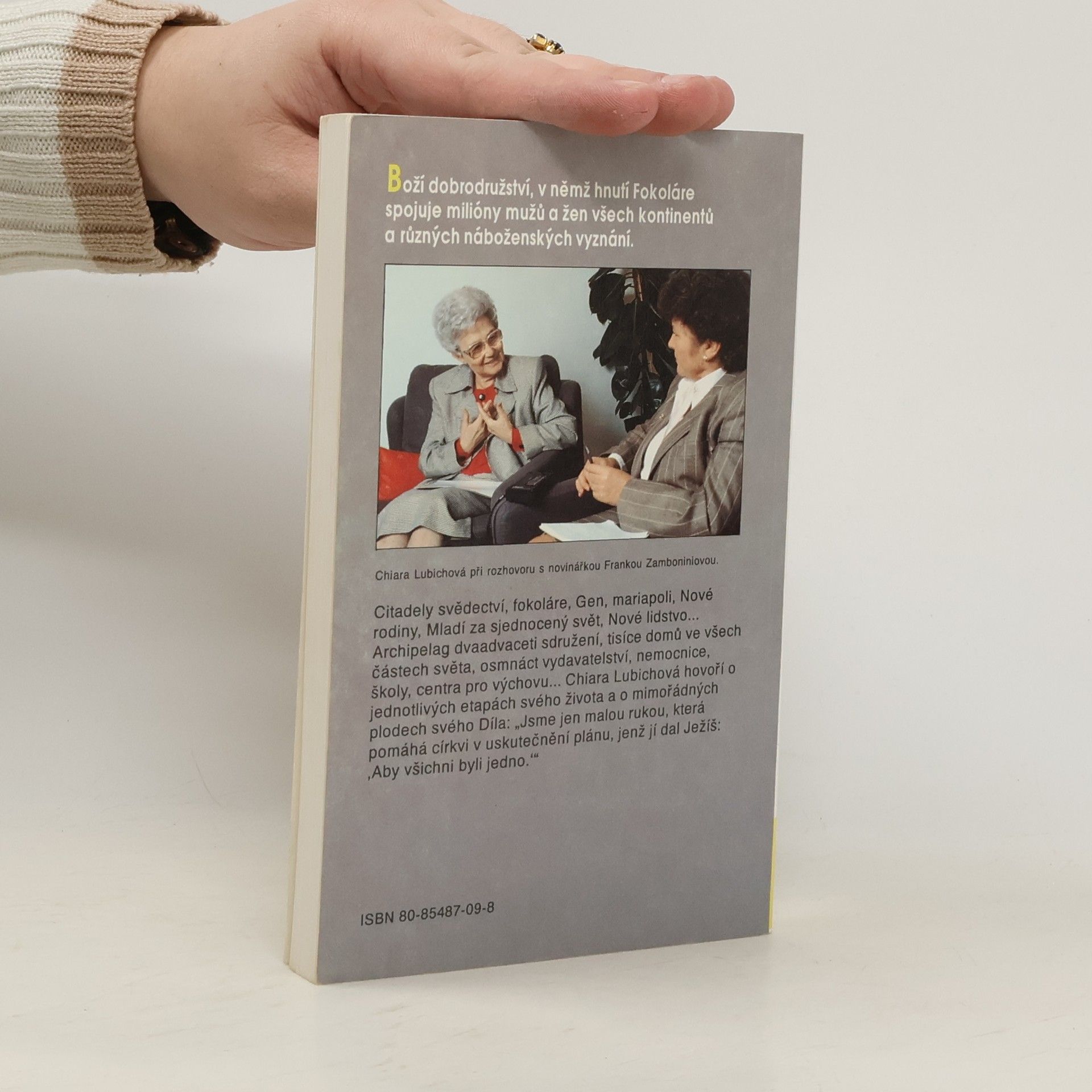Interview novinářky Franky Zamboniniové se zakladatelkou Hnutí fokoláre přibližuje její životní cestu i život hnutí. Kniha nejen uvádí zajímavá fakta, ale je i duchovním obohacením. Zaznamenala velký ohlas v celém světě.