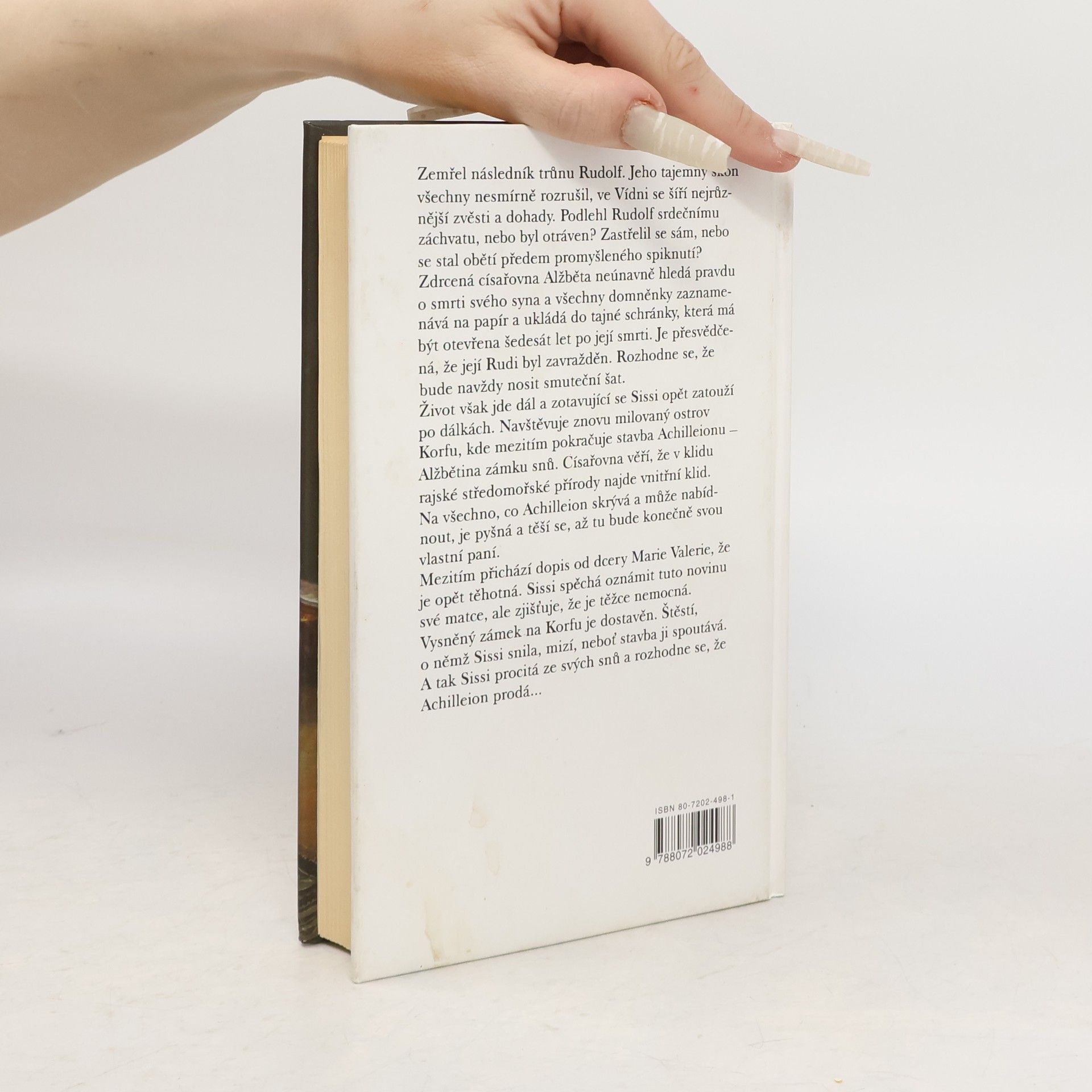 Pátý díl rozsáhlého životopisného románu o životě císařovny Alžběty se odehrává bezprostředně po smrti korunního prince Rudolfa. Zdrcená císařovna hledá pravdu o synově smrti a nabývá přesvědčení, že princ Rudolf byl zavražděn. Čas trochu otupil bolest ze ztráty a císařovna opět cestuje na Korfu, kde mezitím pokračuje stavba Achilleionu, jejího vysněného zámku. Krátce před dostavbou ji potká nová životní rána v podobě těžké nemoci její matky a císařovna, která pozvolna opouští své antické sny, se rozhoduje Achilleion prodat.