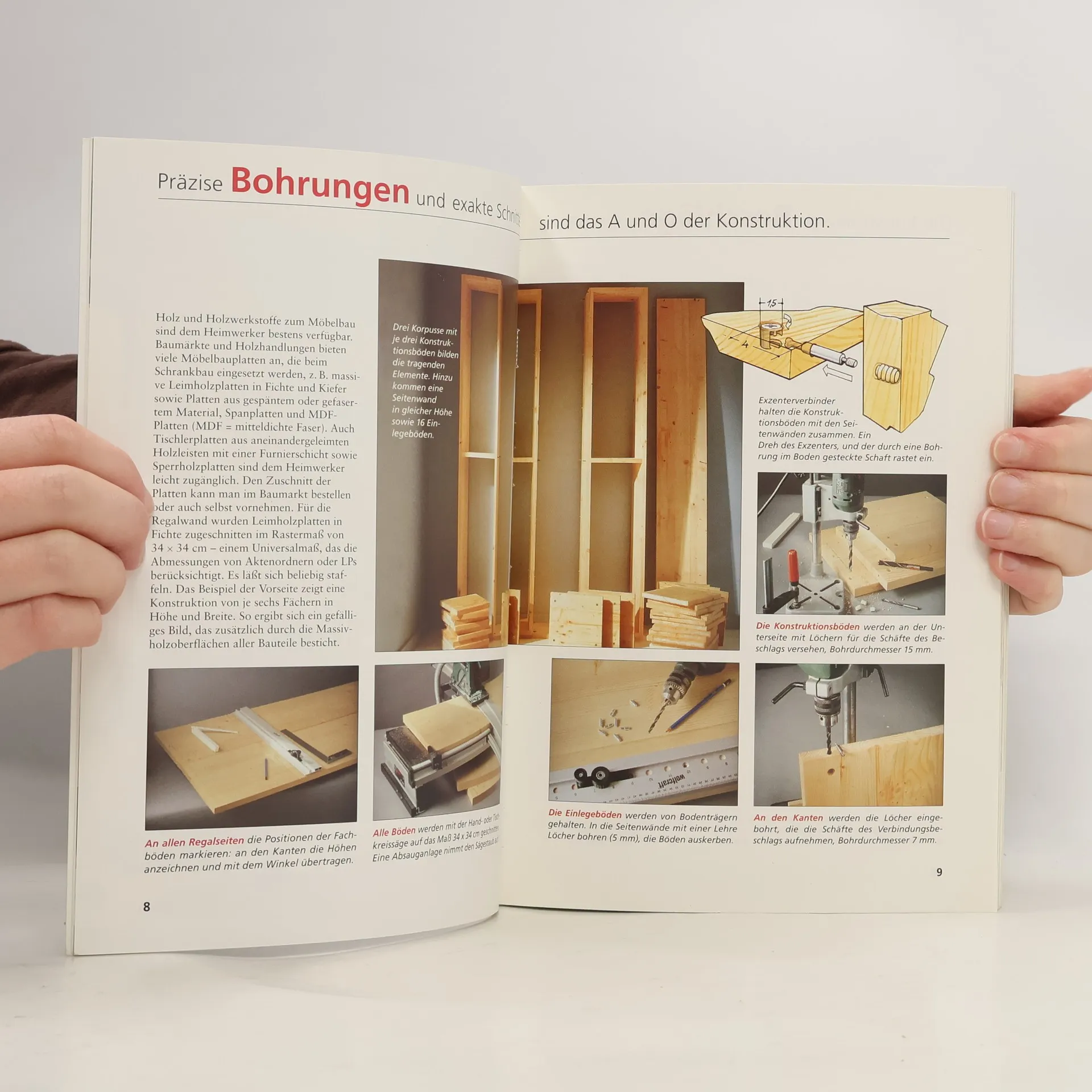 Vorschläge und Anleitungen mit Fotos und Zeichnungen zu einzelnen Arbeitsschritten, Materialien, Werkzeugen und Techniken