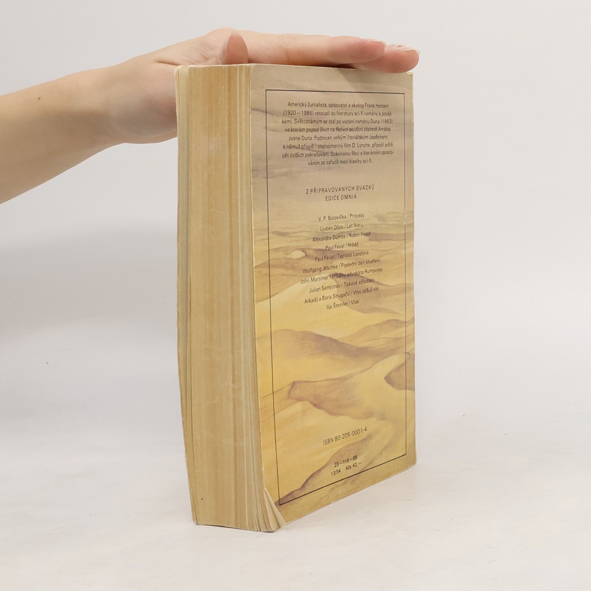 První kniha z cyklu kronik o planetě Duna, fenomenálního díla světové sci-fi. První díl šestidílného sci-fi románu vypráví o pouštní planetě Arrakis s naprostým nedostatkem vody a jediným známým nalezištěm zvláštního koření, které má moc prodloužit lidský život a které poskytuje člověku mimořádné psychické schopnosti. Román vyšel poprvé v roce 1966, získal několik literárních cen (např. Nebula) a měl u čtenářů omračující ohlas. Podle románu vznikl o dvě desetiletí později i film, který natočil známý režisér David Lynch. Frank Herbert svůj úspěch rozvinul v pěti pokračováních zachycujících následné osudy planety Arrakis a boje o její ovládnutí. Šestisvazková sága Duna amerického spisovatele Franka Herberta patří do zlatého fondu světového science fiction.