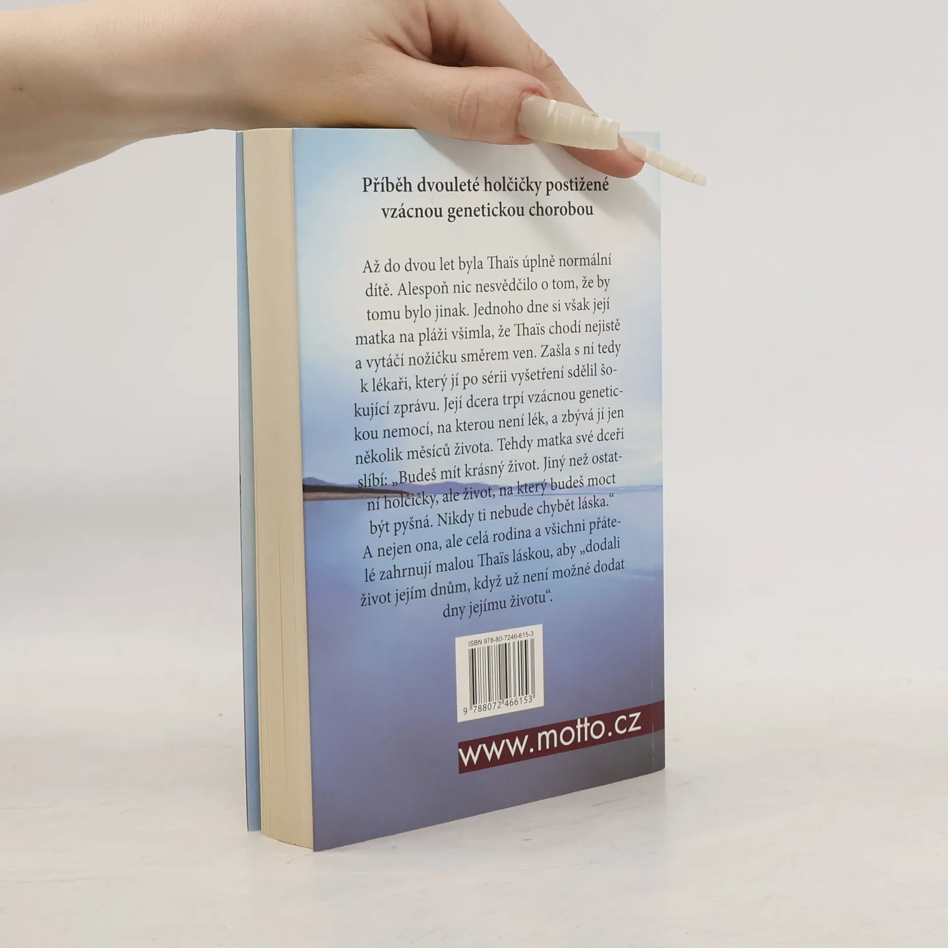 Až do dvou let byla Thais úplně normální. Alespoň nic nesvědčilo o tom, že by tomu bylo jinak. Jednoho dne si však její matka na pláži všimla, že Thais chodí nejistě a vytáčí nožičku směrem ven. Zašla s ní tedy k lékaři, který jí po sérii vyšetření sdělil šokující zprávu. Její dcera trpí vzácnou genetickou nemocí, na kterou není lék, a zbývá jí jen několik měsíců života. Tehdy matka své dceři slíbí: „Budeš mít krásný život. Jiný než ostatní holčičky, ale život, na který budeš moct být pyšná.“