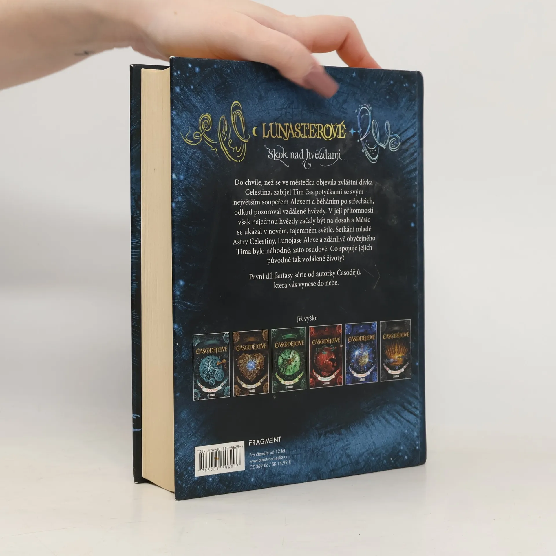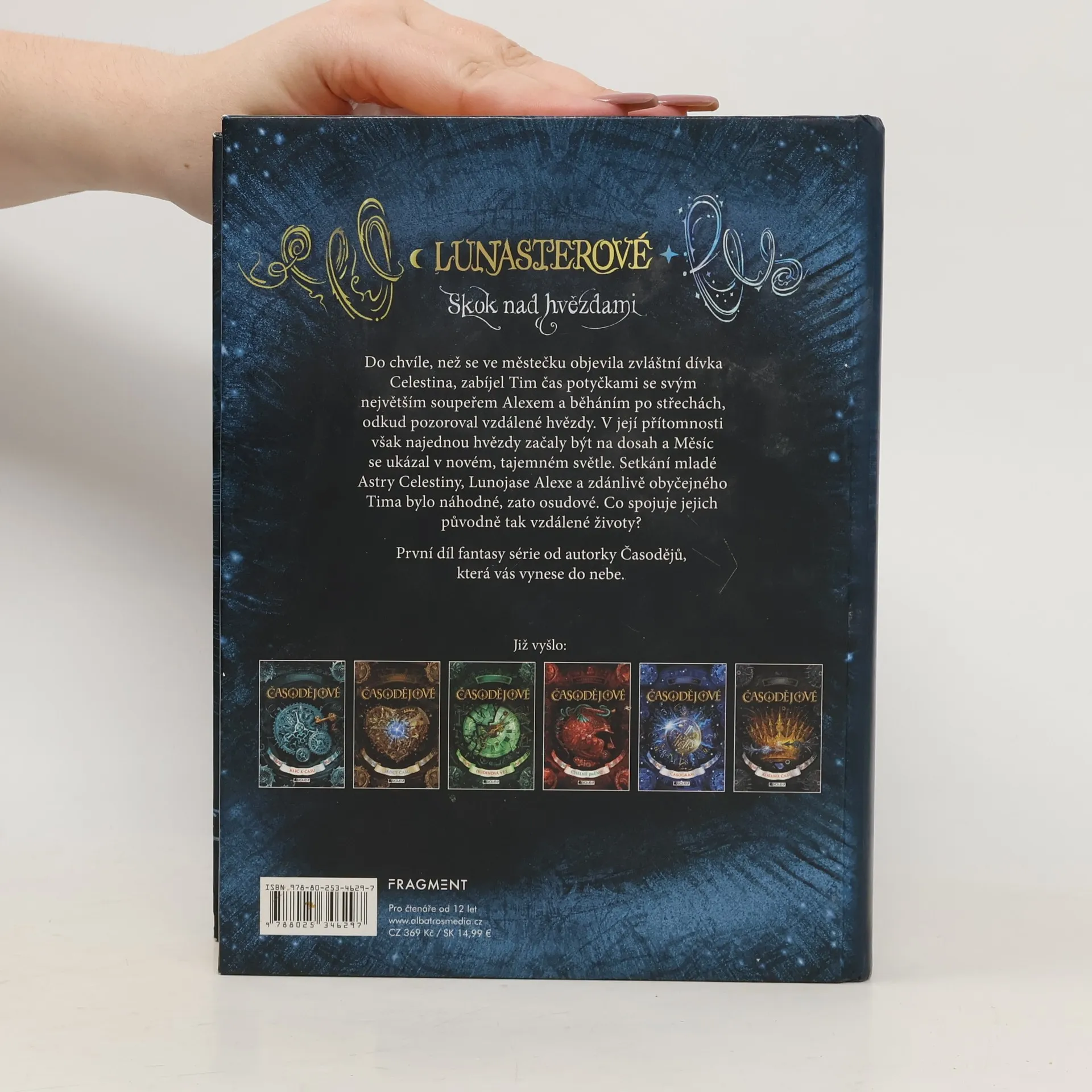 První díl fantasy série od autorky Časodějů, která vás vynese do nebe. Vítejte ve světě Lunasterů. Podobá se tomu našemu, v mnoha ohledech je ale velmi odlišný. Mimo obyčejných beztvářných ho obývají okřídlení Lunojasní, jejichž síla je spojená s Měsícem, a Asterové – hvězdní skokani, kteří umí vyhledávat zvláštní znaky a najít podle nich cesty do jiných světů. Mezi Lunojasnými a Astery panuje dlouholetá rivalita, ale jejich osudy jsou zároveň vzájemně provázané… Do chvíle, než se ve městečku objevila zvláštní dívka Celestina, zabíjel Tim čas potyčkami se svým největším soupeřem Alexem, běháním po nočních ulicích a běháním po střechách, odkud pozoroval krásné a vzdálené hvězdy. V její přítomnosti však najednou hvězdy začaly být na dosah a Měsíc se začal ukazovat v novém, tajemném světle. Setkání mladé Astry Celestiny, Lunojase Alexe a zdánlivě obyčejného beztvářného Tima bylo náhodné, zato osudové. Co spojuje jejich původně tak vzdálené životy? Jakou bariéru bude muset Tim překonat? Co bylo předpovězeno Alexovi ve starodávné věštbě a proč se Celestině tak často zdá zvláštní sen o dvanácti princeznách? Nová fantasy série od autorky Časodějů.