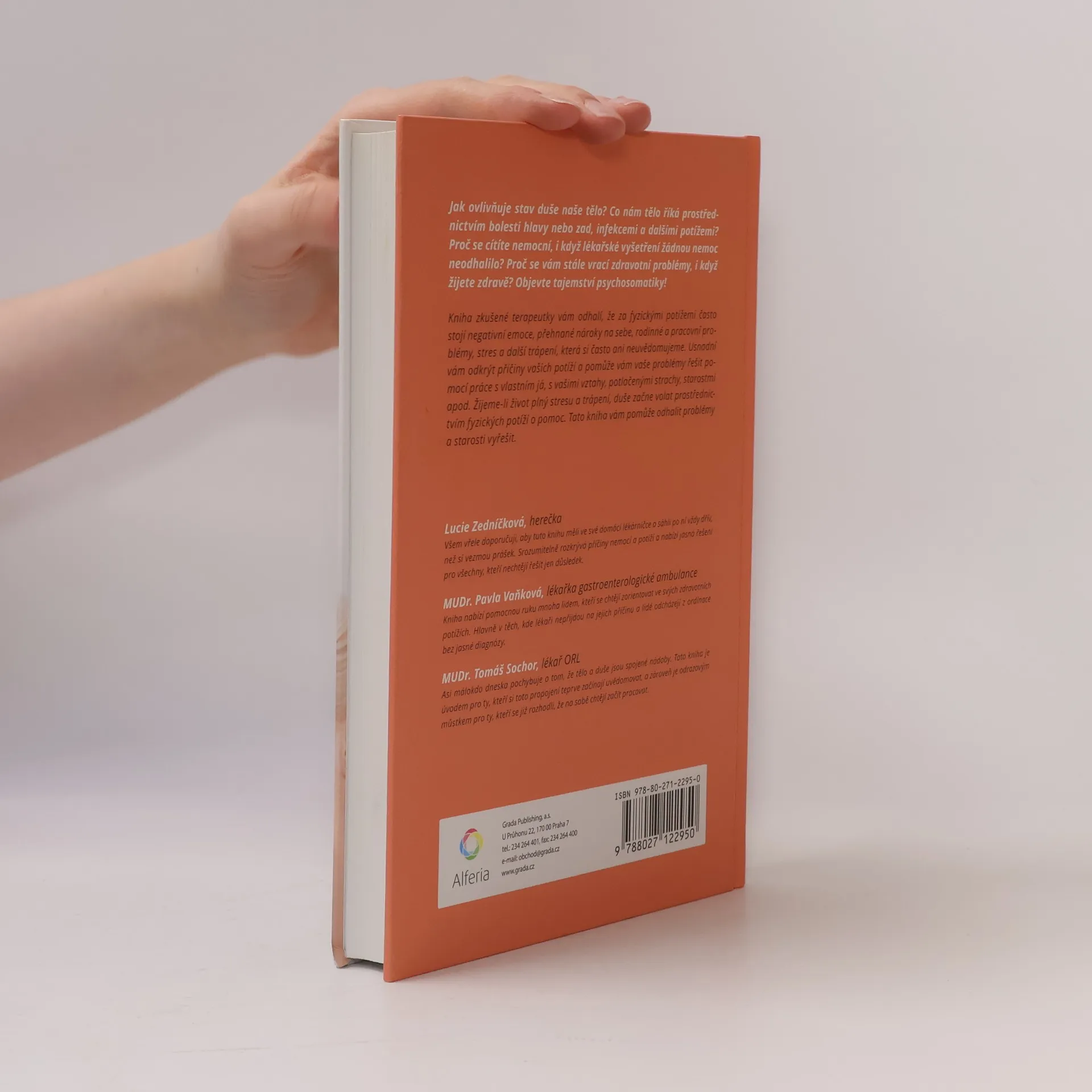 Jak ovlivňuje stav duše naše tělo? Co nám tělo říká prostřednictvím bolesti hlavy nebo zad, infekcemi a dalšími potížemi? Proč se cítíte nemocní, i když lékařské vyšetření žádnou nemoc neodhalilo? Proč se vám stále vrací zdravotní problémy, i když žijete zdravě? Objevte tajemství psychosomatiky! Kniha zkušené terapeutky vám odhalí, že za fyzickými potížemi často stojí negativní emoce, přehnané nároky na sebe, rodinné a pracovní problémy, stres a další trápení, která si často ani neuvědomujeme. Usnadní vám odkrýt příčiny vašich potíží a pomůže vám vaše problémy řešit pomocí práce s vlastním já, s vašimi vztahy, potlačenými strachy, starostmi apod. Žijeme-li život plný stresu a trápení, duše začne volat prostřednictvím fyzických potíží o pomoc. Tato kniha vám pomůže odhalit problémy a starosti vyřešit.