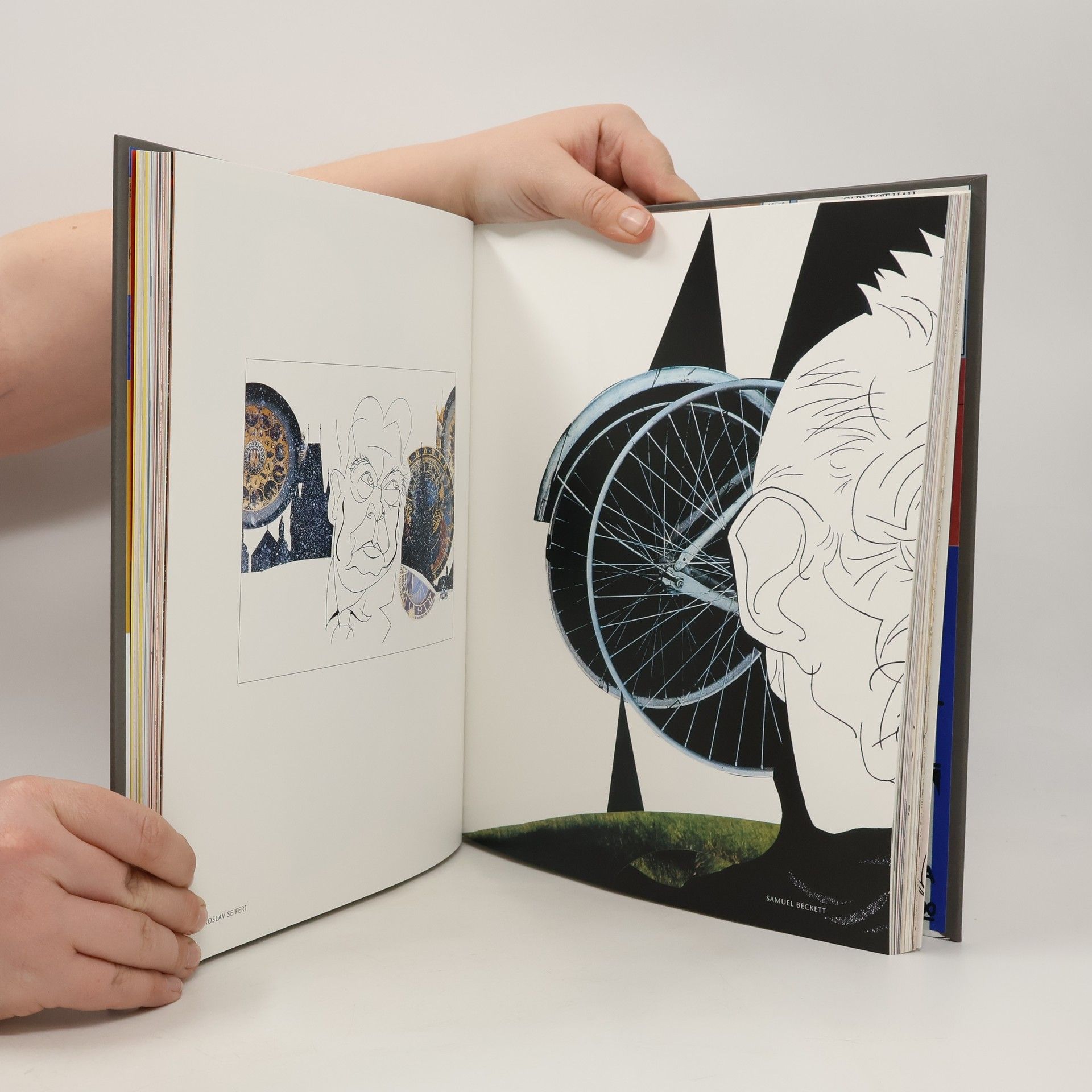 Poprvé se českému čtenáři představuje v knižní podobě tvorba světově uznávaného českého výtvarníka a portrétního karikaturisty Josefa Blechy. Kresbou a karikaturou se soustavně zabývá více než třicet let. Výběr z jeho převážně posledních prací představuje na 222 slavných a významných světových i českých osobností, především z oblasti literatury, hudby, výtvarného umění, divadla, filmu, architektury i politiky... K některým kresbám připsal autor poznámky, v nichž se vyznává ze vztahu ke karikované osobnosti; díky svému dlouholetému pobytu v USA a Kanadě měl totiž příležitost se s mnoha z nich osobně seznámit