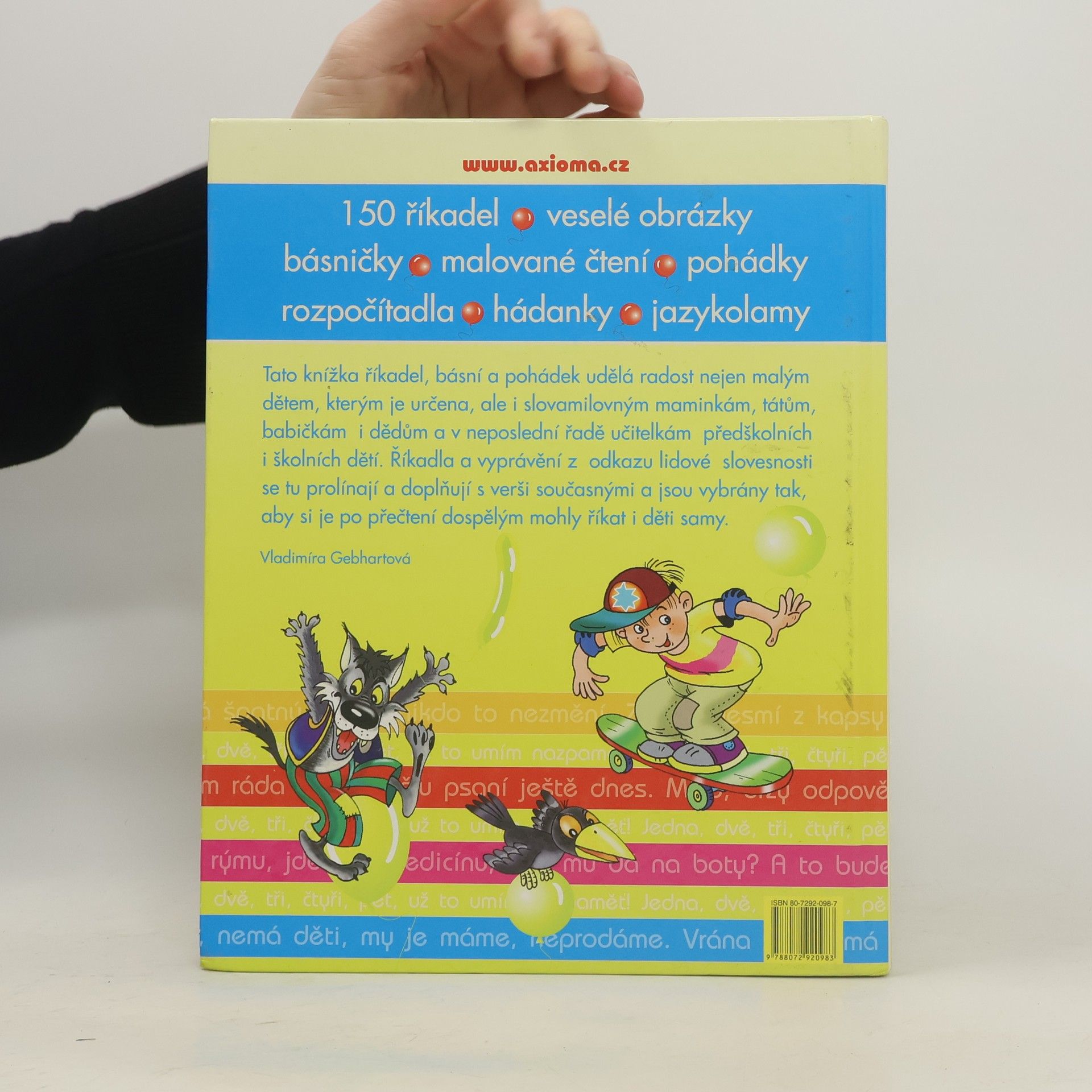 Knížka říkadel, básní a pohádek udělá radost nejen malým dětem, kterým je určena, ale i maminkám, tátům či učitelkám předškolních i školních dětí. Klasická říkadla a vyprávění, které se učily už naše maminky, se tu prolínají a doplňují s verši současnými a jsou vybrány tak, aby si je po přečtení dospělým mohly říkat i děti samy.