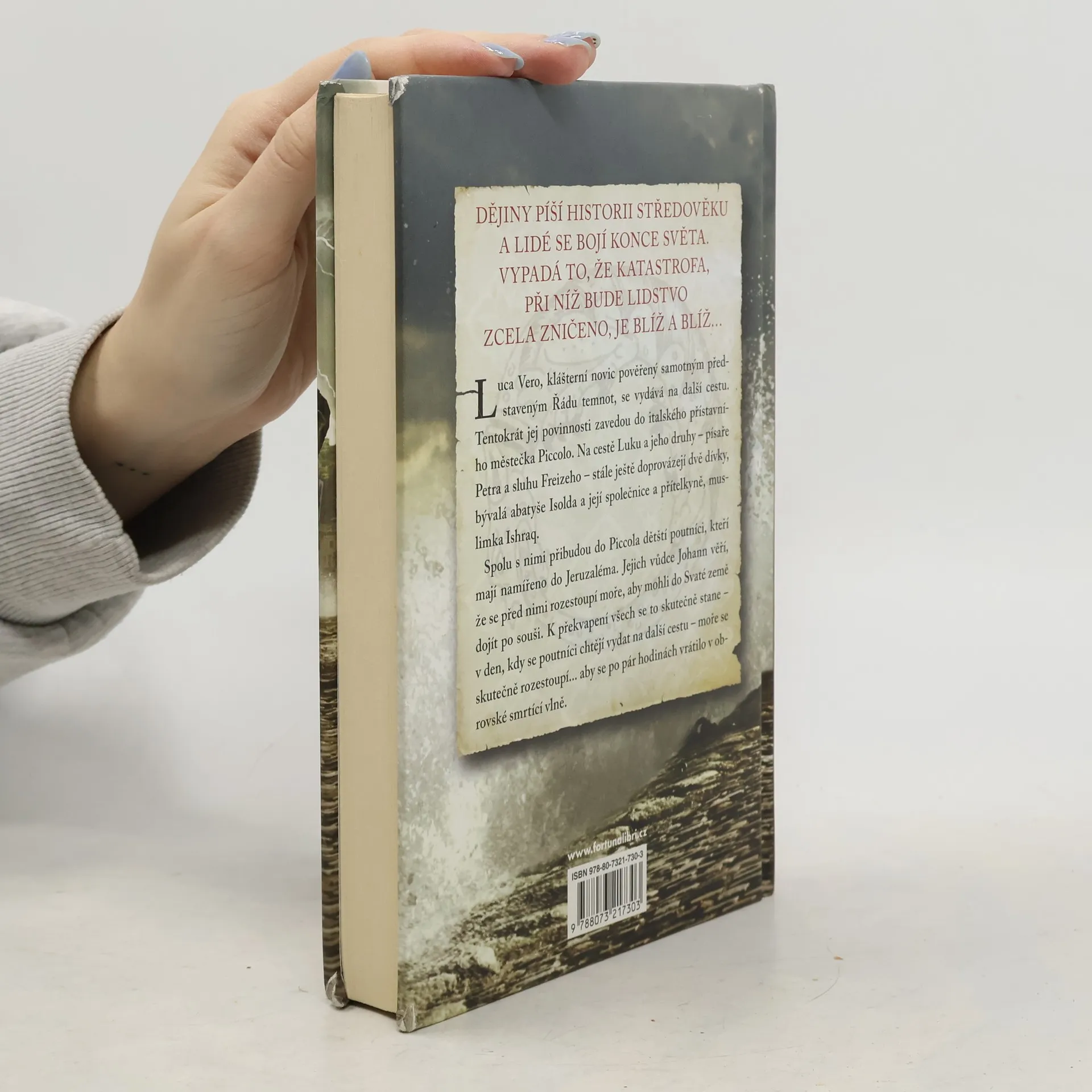 DĚJINY PÍŠÍ HISTORII STŘEDOVĚKU A LIDÉ SE BOJÍ KONCE SVĚTA. VYPADÁ TO, ŽE KATASTROFA, PŘI NÍŽ BUDE LIDSTVO ZCELA ZNIČENO, JE BLÍŽ A BLÍŽ… Luca Vero, klášterní novic pověřený samotným představeným Řádu temnot – aby vyšetřil okolnosti blížícího se konce světa a přitom hledal stopy Ďábla a vykonával soud nad osobami podezřelými z kacířství – se vydává na další cestu. Tentokrát jej povinnosti zavedou do italského přístavního městečka Piccolo. Na cestě Luku a jeho druhy – písaře Petra a sluhu Freizeho – stále ještě doprovázejí dvě dívky, s nimiž se setkali při vyšetřování kacířství v klášteře Lucretili: bývalá abatyše Isolda a její společnice a přítelkyně, muslimka Ishraq. Spolu s nimi přibudou do Piccola dětští poutníci, kteří mají namířeno do Jeruzaléma. Jejich vůdce Johann věří, že se před nimi rozestoupí moře, aby mohli do Svaté země dojít po souši. K překvapení všech se to skutečně stane – v den, kdy se poutníci chtějí vydat na další cestu, moře se skutečně rozestoupí – aby se po pár hodinách vrátilo v obrovské smrtící vlně… Obyvatelé Piccola obviní Isoldu a Ishraq, že vlnu schválně kouzly přivolaly a Luca je musí znovu postavit před soud. A aby jeho starostem nebyl konec, v Piccolu se objeví i tajemný velmistr Řádu temnot…