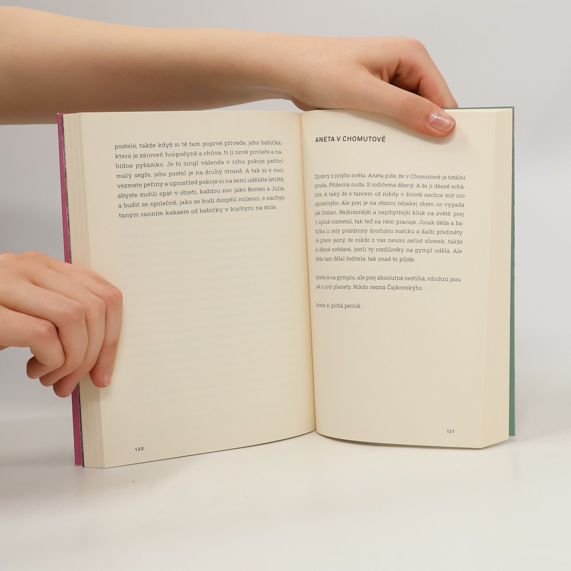 Baletky mají dvě tváře. Tu přední, usměvavou a dokonalou, kterou vidí publikum. A pak tu odvrácenou, když zmizí za oponou, předpisový úsměv jim spadne a tvář se zkřiví do ztrhaného šklebu, protože se dusí. Při tanci totiž nemůžou dýchat pusou. Třeští oči a lapají po dechu. Kdyby baletky někdo takhle nafilmoval, byla by to přehlídka utrpení. K tomu jsou ale trénované. Tak jako hlavní hrdinka tohohle příběhu. Každý den zažívá baletní dril jako v armádě. Ještě jí nebylo čtrnáct, a už je odbornicí na používání projímadel a zvracení, aby si udržela váhu, na ošetřování krvavých palců a stahování prsou. A do toho poznává klubový život v Praze. Jsou devadesátá léta, frčí perník a extáze a ona objevuje sex a zjišťuje, že má nevlastního bratra, který je úplně jiný, než by chtěla. A že její sen stát se baletkou a tančit ve Zlaté kapličce se mění v noční můru. Režisérka a tanečnice Miřenka Čechová vychází z vlastních zkušeností a deníkových zápisků. Její próza je sebeironickým, syrovým a nelítostným obrazem studií na Taneční konzervatoři a pražského života v divokých 90. letech.