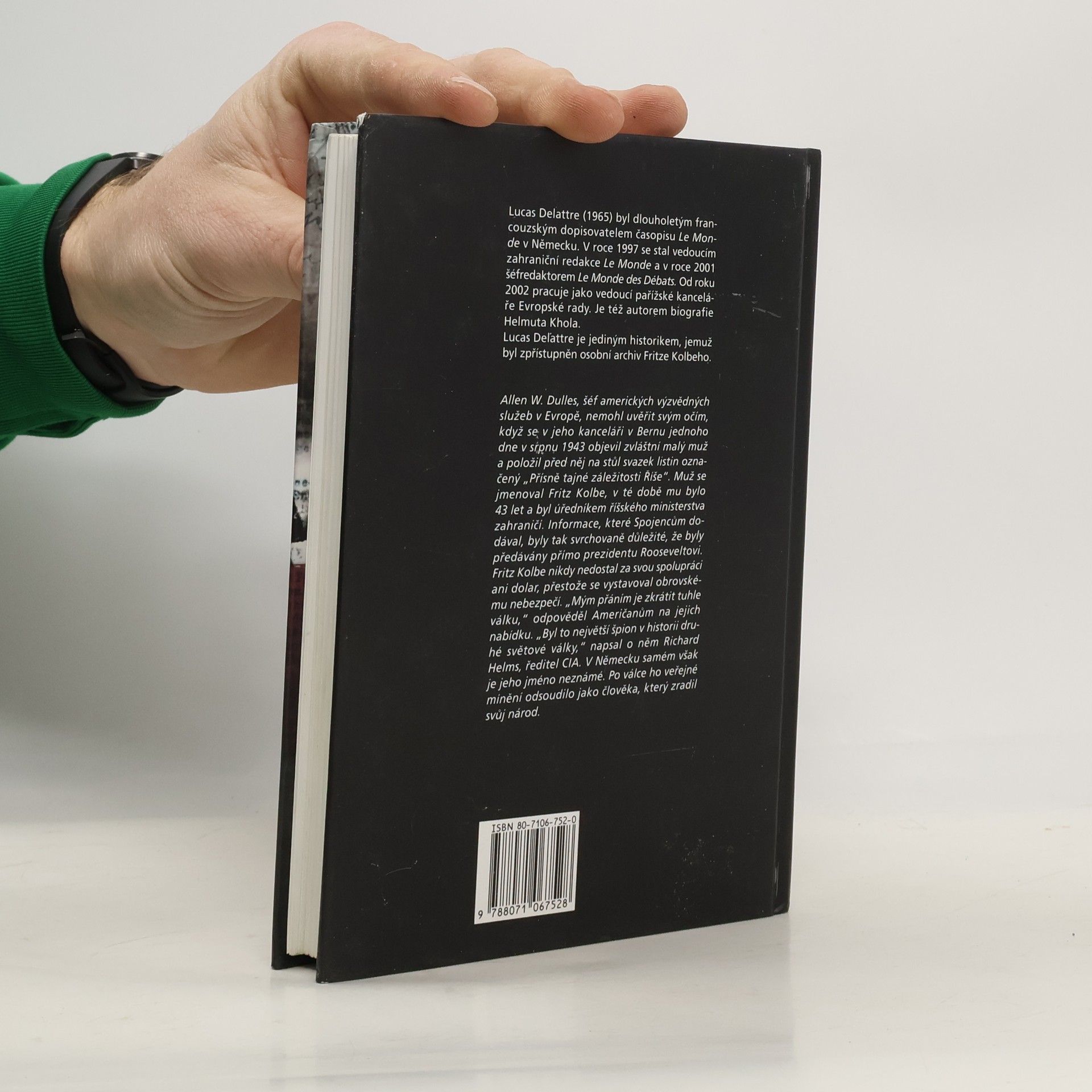 V červnu roku 2000 byly v USA otevřeny dosud neznámé archivy. Mezi nimi byl objeven i soubor 1600 přísně tajných dokumentů prvořadého významu od úředníka německého ministerstva zahraničí Fritze Kolbeho alias George Wooda. Přesto jméno Fritz Kolbe téměř nikdo v Německu dodnes nezná. Německé veřejné mínění po válce nikdy neuznalo zásluhy tohoto „zrádce“. Kniha Lucase Delattra vychází z autentických dokumentů a svědectví. Rekonstruuje pozoruhodný příběh Fritze Kolbeho a přináší množství neznámých informací o nacistickém Německu, o životě obyčejných Němců i nejvyšších nacistických pohlavárů.