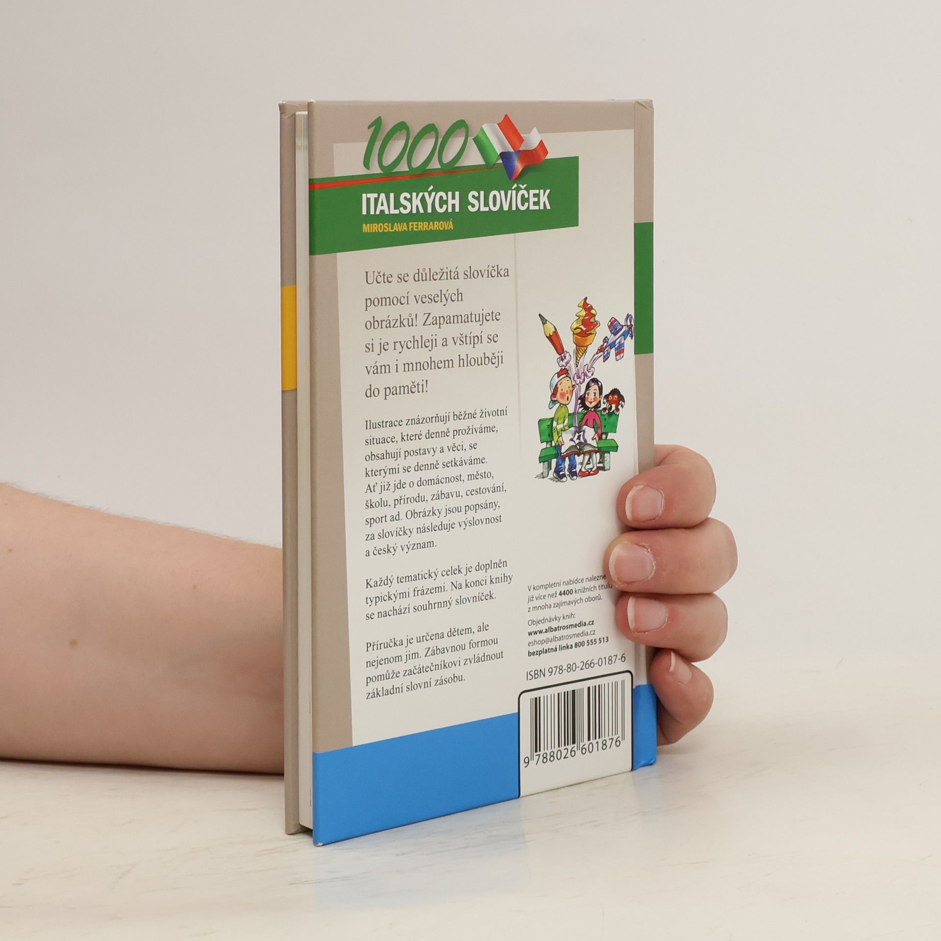 Praktická knížka se stane dobrým pomocníkem při učení a procvičování italských slovíček. Na veselých obrázcích, jež znázorňují běžné životní situace, najdete názvy věcí, se kterými se denně setkáváte. Každý tematický celek je pak doplněn jednoduchými frázemi ze života, které můžete potřebovat. Na konci knížky najdete souhrnný česko-italský slovník se všemi slovy z knížky.