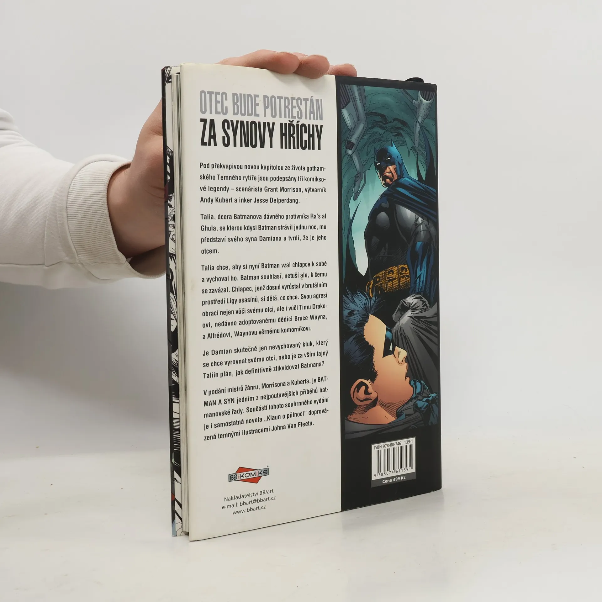 Pod překvapivou novou kapitolou ze života gothamského Temného rytíře jsou podepsány tři komiksové legendy – scénárista Grant Morrison, výtvarník Andy Kubert a inker Jesse Delperdang. Talia, dcera Batmanova dávného protivníka Ra's al Ghula, se kterou kdysi Batman strávil jednu noc, mu představí svého syna Damiana a tvrdí mu, že je otcem. Talia chce, aby si nyní Batman vzal chlapce k sobě a vychoval ho. Batman souhlasí, netuší ale, k čemu se zavázal. Chlapec, jenž dosud vyrůstal v brutálním prostředí Ligy asasínů, si dělá, co chce. Svou agresi obrací nejen vůči svému otci, ale i vůči Timu Drakeovi, nedávno adoptovanému dědici Bruce Waynea a Alfrédovi, Wayneovu věrnému komorníkovi. Je Damian skutečně jen nevychovaný kluk, který se chce vyrovnat svému otci nebo je za vším tajný Taliin plán jak definitivně zlikvidovat Batmana? V podání mistrů žánru, Morrisona a Kuberta, je BATMAN A SYN jedním z nejpoutavějších příběhů batmanovské řady. Součástí tohoto souhrnného vydání je i samostatná novela „Klaun o půlnoci“ doprovázená temnými ilustracemi Johna Van Fleeta.