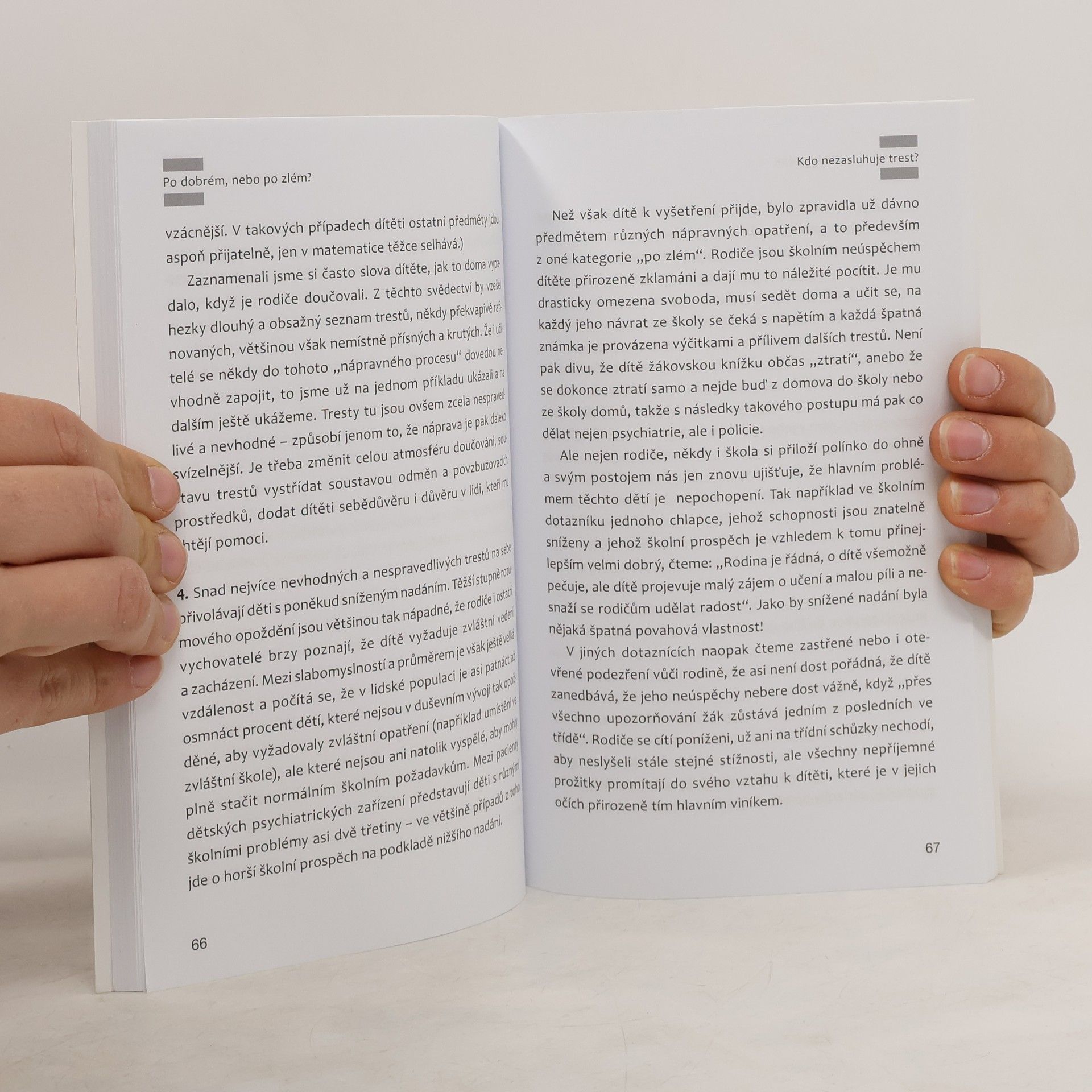 O výchovných odměnách a trestech – Umění odpouštět – Výchovné prostředky a situace pro jejich využití. Význam odměn a trestů je ve výchově zřejmě stále týž. Jen v různých dobách a společnostech se jedno nebo druhé více nebo méně zdůrazňuje, uplatňuje nebo hlásá a praktikuje. Autor si dovoluje pozvat čtenáře, aby se spolu s ním laskavě zamýšleli, proč, kdy a jak máme dát ve výchově svých dětí přednost tomu „po dobrém“ nebo „po zlém“. Rozumět sobě a rozumět dítěti, to už je první krok na cestě výchovy.