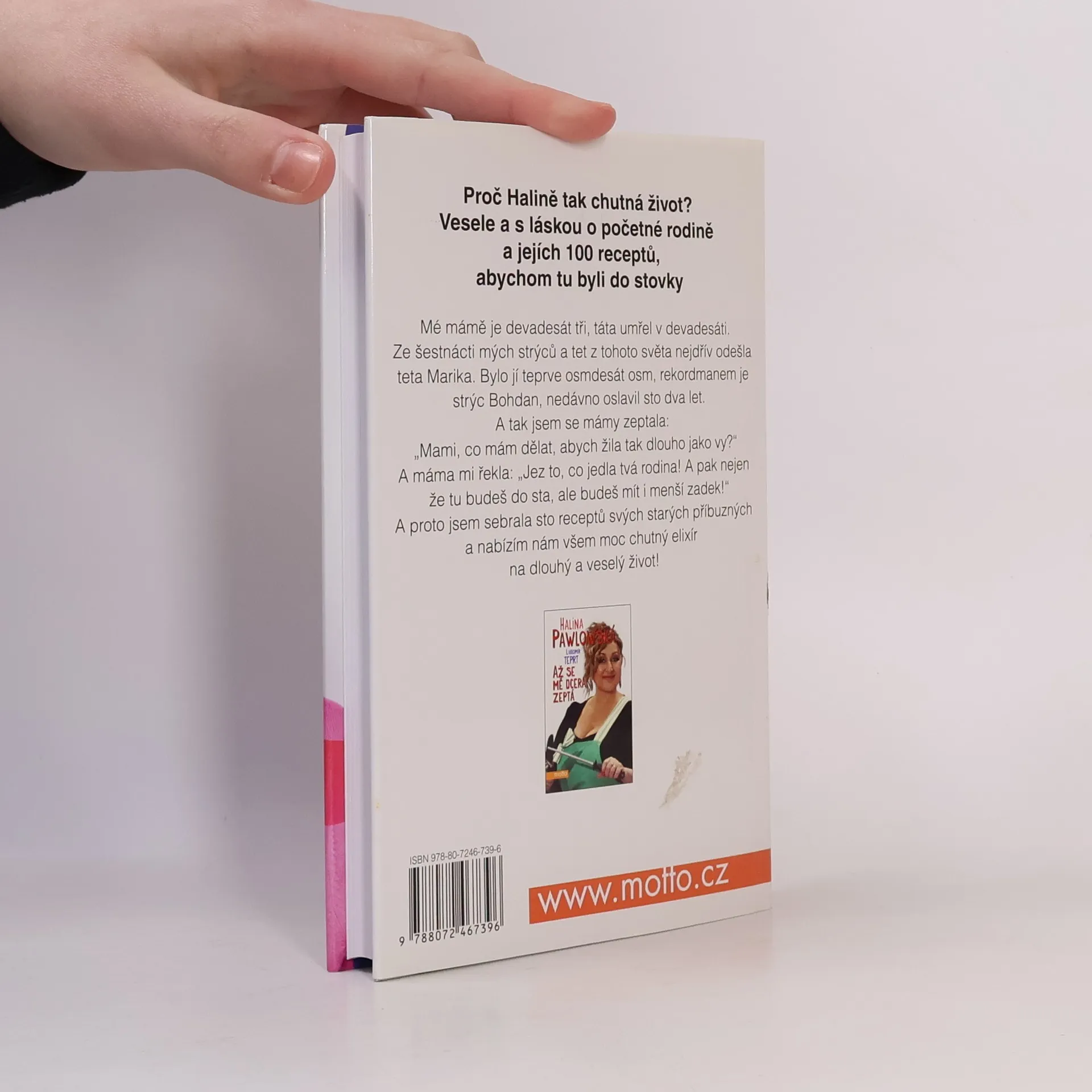 Mé mámě je devadesát tři, táta umřel v devadesáti. Ze šestnácti mých strýců a tet z tohoto světa nejdřív odešla teta Marika. Bylo jí teprve osmdesát osm, rekordmanem je strýc Bohdan, nedávno oslavil sto dva let. A tak jsem se mámy zeptala: „Mami, co mám dělat, abych žila tak dlouho jako vy?“ A máma mi řekla: „Jez to, co jedla tvá rodina! A pak nejen, že tu budeš do sta, ale budeš mít i menší zadek!“ A proto jsem sebrala sto receptů svých příbuzných a nabízím nám všem chutný elixír na dlouhý život.