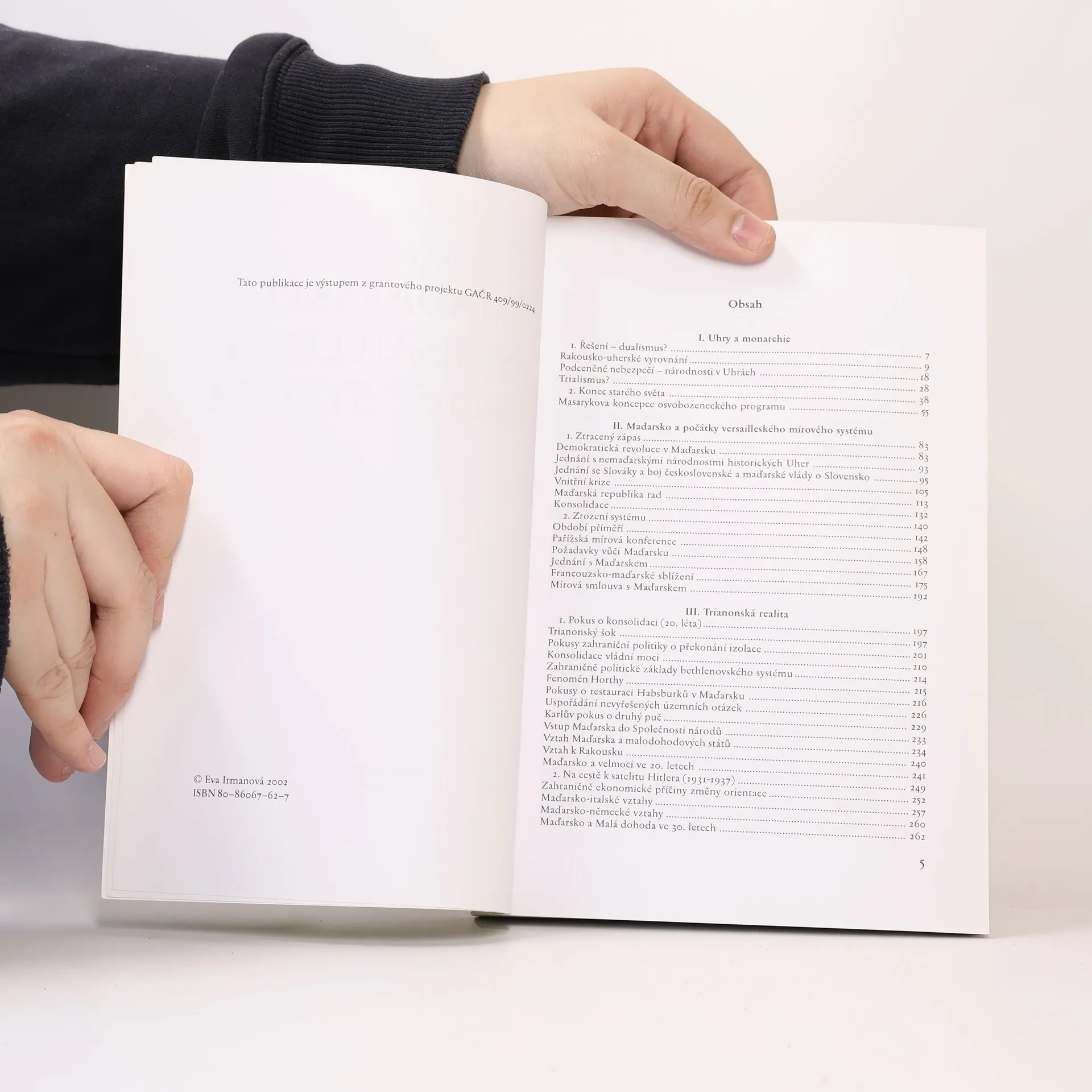 Z obsahu: Poválečný rozpad Rakouska-Uherska. Rozdělení a oslabení historických Uher. Pařížská mírová konference. Trianonská konference. Maďarsko v rámci versailleského systému. Úsilí o revizi výsledků pařížské mírové konference a idea Velkého Maďarska jako nosný pilíř maďarské politiky v období mezi dvěma válkami. Trianonské trauma maďarských dějin. 2. světová válka a její důsledky.