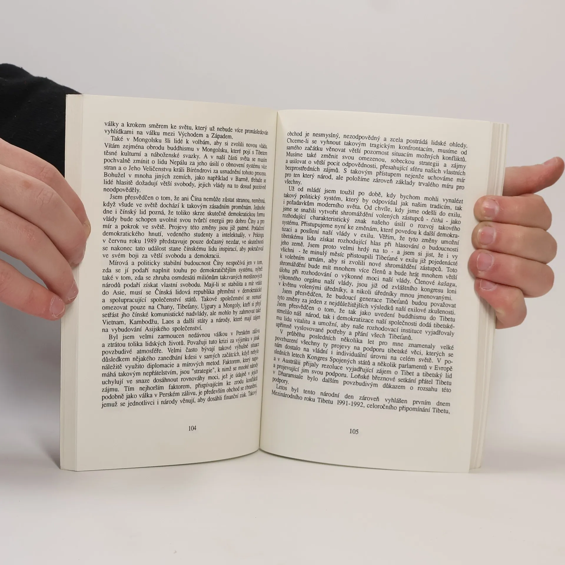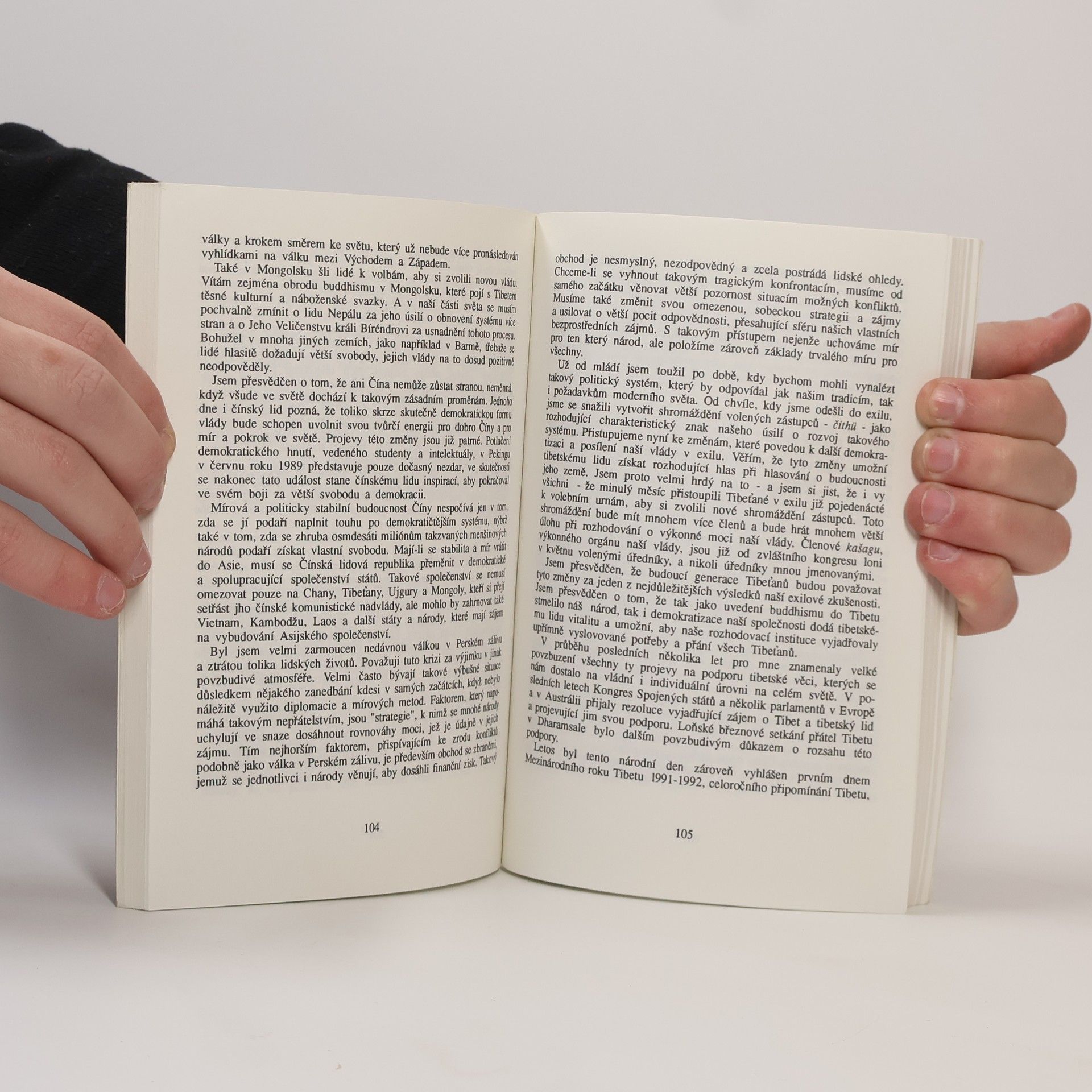 Kniha je výborem nejrůznějších dalajlamových vzpomínek, projevů, rozhovorů a výkladů. Shrnuje v sobě texty, které mají nejen zachytit pohnuté životní osudy oficiálního představitele a náboženského vůdce Tibetu, ale především přiblížit jeho myšlenky a osobní hodnoty, které jsou v pozadí všech jeho skutků. V první části knihy můžete víceménně chronologicky sledovat život a politický vývoj dalajlamy a tím i politický vývoj tibetské exilové reprezentace, jakož i kulturní tradice vlastního Tibetu. Druhá část knihy je zaměřena spíše na některé základní duchovní otázky tibetského buddhismu, tak jak je chápe a vykládá Tandzin Gjamccho. V závěru je poté stať Josefa Kolmaše o pobytu dalajlamy v Československu v únoru 1990.