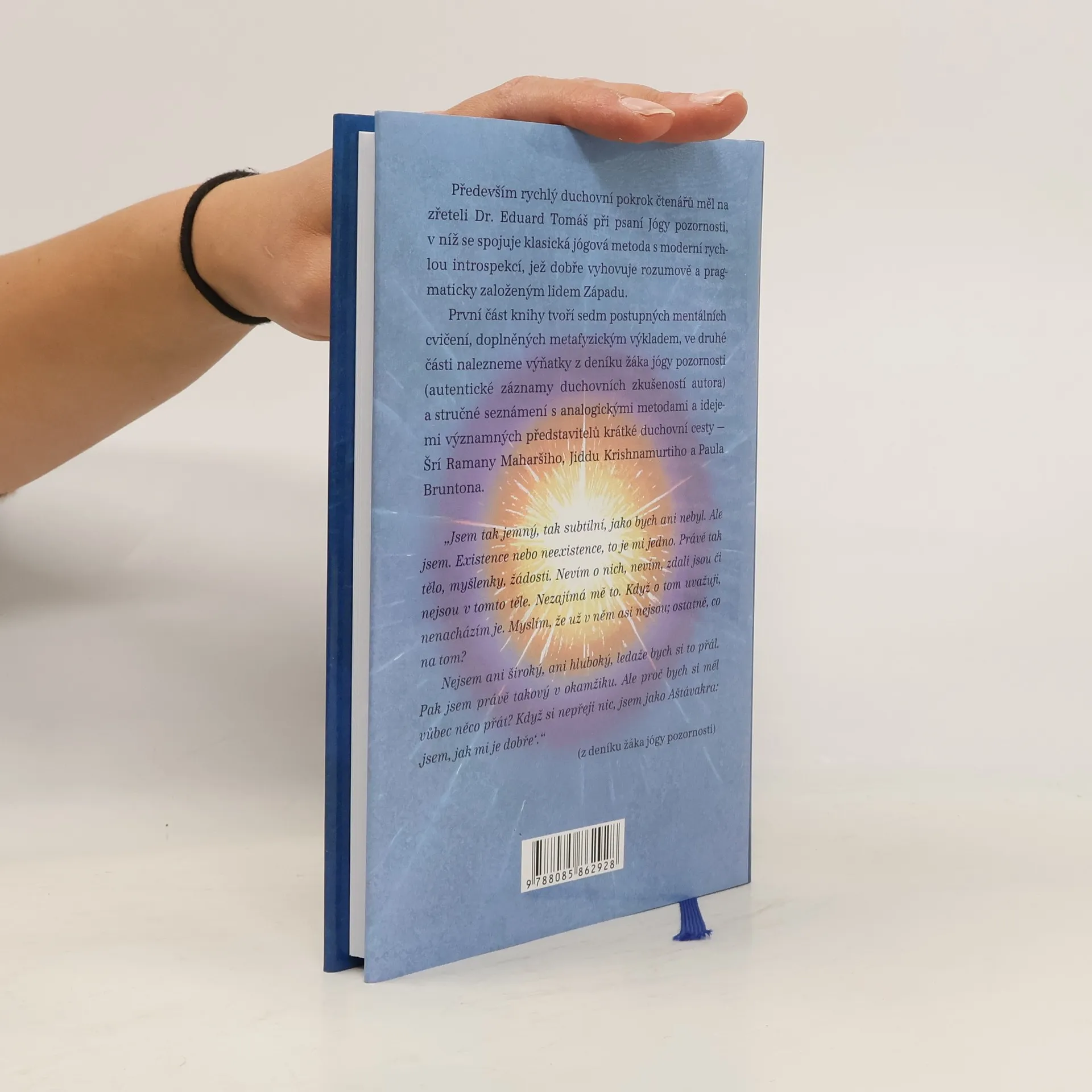 Kniha obsahuje kurz jógy pozornosti, která je na jedné straně metodou klasickou, avšak zároveň také ultramoderní, neboť vyhovuje racionálně a pragmaticky zaměřené mentalitě a časovým možnostem člověka západní civilizace. První část knihy tvoří sedm postupných mentálních cvičení spojených s metafyzickým výkladem, ve druhé části nalezneme zejména výňatky z deníku žáka jógy pozornosti (autentické záznamy duchovních zkušeností autora) a stručné seznámení s metodami a idejemi významných představitelů krátké duchovní cesty - Šrí Ramany Maharšiho, Jiddu Krishnamurtiho a Paula Bruntona.
