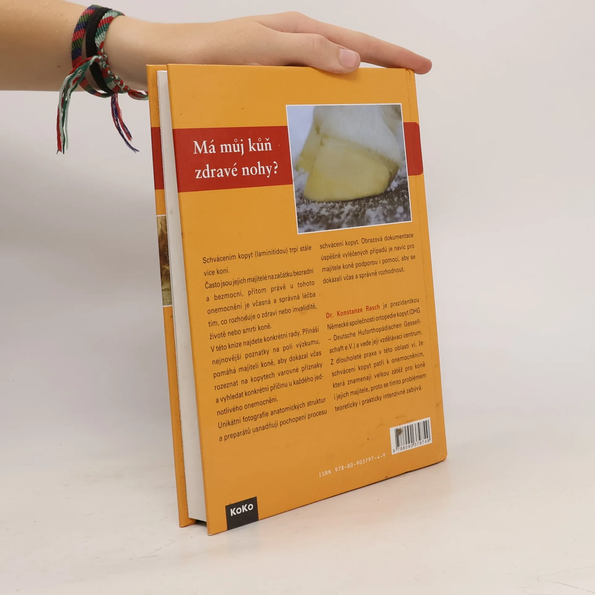 Má můj kůň zdravé nohy? Schvácením kopyt (laminitidou) trpí stále více koní. Často jsou jejich majitelé na začátku bezradní a bezmocní, přitom právě u tohoto onemocnění je včasná a správná léčba tím, co rozhoduje o zdraví nebo invaliditě, životě nebo smrti koně. V této knize najdete konkrétní rady. Přináší nejnovější poznatky na poli výzkumu, pomáhá majiteli koně, aby dokázal včas rozeznat na kopytech varovné příznaky a vyhledat konkrétní příčinu onemocnění u každého jednotlivého onemocnění. Unikátní fotografie anatomických struktur a preparátů usnadňují pochopení procesu schvácení kopyt. Obrazová dokumentace úspěšně vyléčených případů je navíc pro majitele koně podporou i pomocí, aby se dokázali včas a správně rozhodnout. Kromě rejstříku, nomenklatury a užitečných adres je zde bohatý seznam literatury – studium pro náročné tak může pokračovat. Právě množství odkazů na vědecké výzkumy a zdroje včetně mnohdy zcela rozporných výsledků studií ukazuje, že zdraví kopyt podléhá mnoha faktorům. Zdroj.http://www.eshop-rychle.cz/