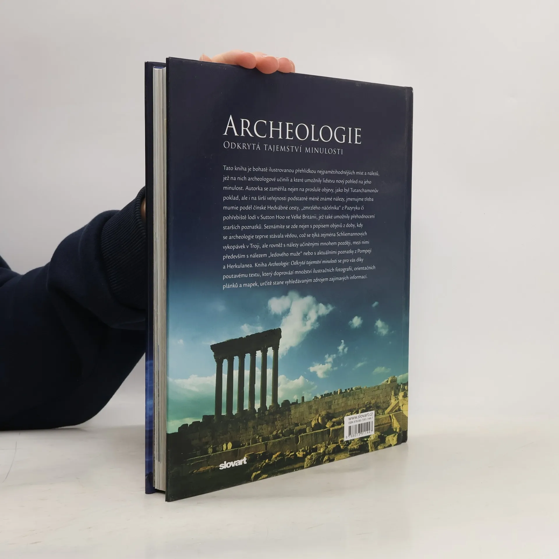 Kniha pojednávající o archeologii zaměřující se na nejdůležitější objevy z celého světa od vzniku tohoto vědního oboru až po současnost. Popisuje proslavené nálezy, např. Tutanchamonovu hrobku, ale i méně významné nálezy, jako např. vykopávky Kathlen Kenyonové v Jerichu. Slavné monumenty jako Stonehenge, nebo antické pozůstatky Athén a Říma, Teotihuacánu v Mexiku a další. Kniha obsahuje spoustu obrazového materiálu . Zajímavost na závěr, tisk knihy byl v Číně.
