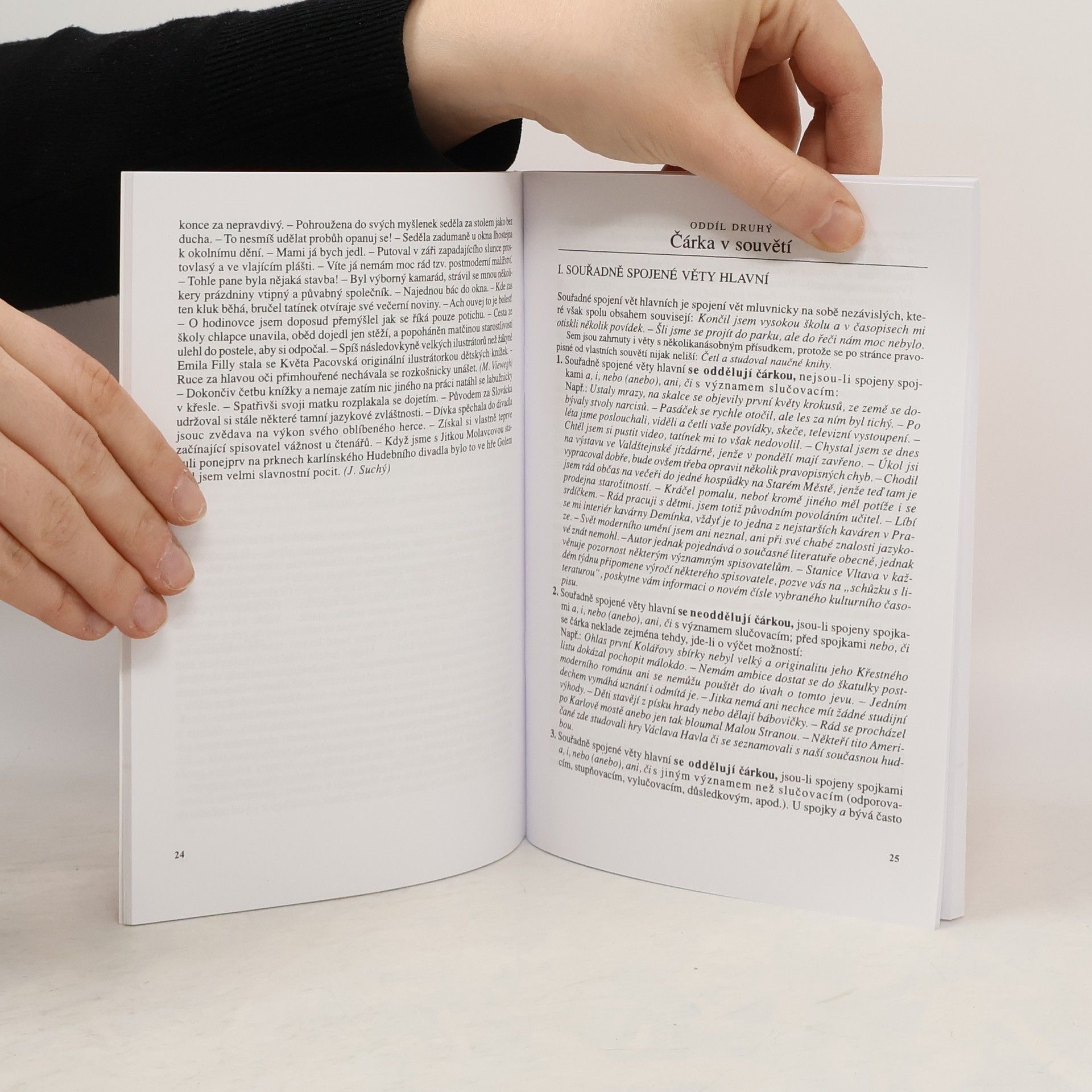 Průvodce interpunkcí pro střední školy a veřejnost. Příručka vychází z Pravidel českého pravopisu (1993), ale rozšiřuje a doplňuje soubor pravidel tam obsažených o další případy psaní čárek, s nimiž se uživatel jazyka v písemné praxi může setkat. Kniha obsahuje také četná cvičení pro procvičení pravidel. Kontrolu procvičovaných jevů usnadňuje klíč připojený k příručce.