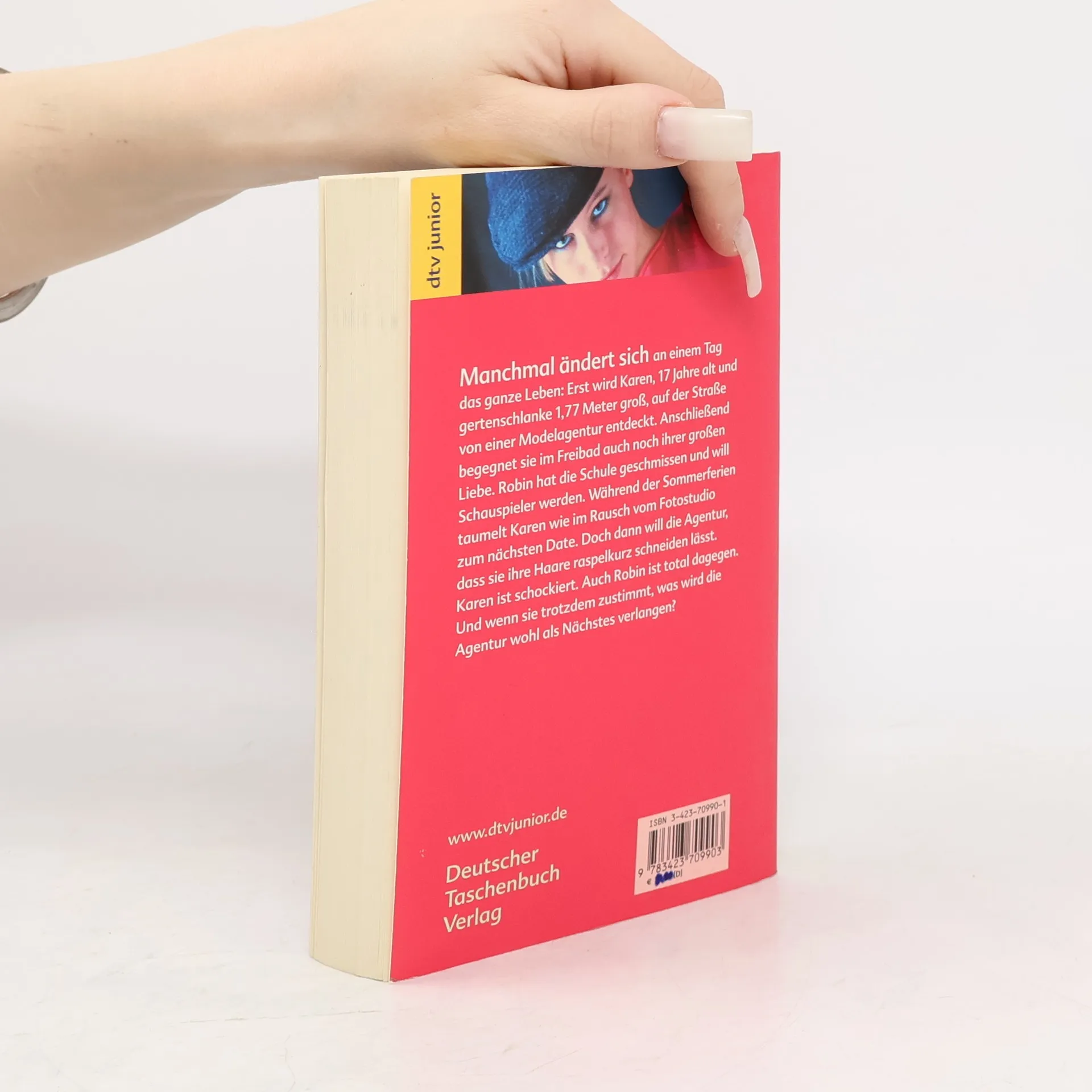 »Susanne Fülscher skizziert auf ihre Art den Abschied von den süßen Flausen.« Eselsohr Manchmal ändert sich an einem Tag das ganze Leben: Erst wird Karen, 17 Jahre alt und gertenschlanke 1,77 Meter groß, auf der Straße von einer Modelagentur entdeckt. Anschließend begegnet sie im Freibad auch noch ihrer großen Liebe. Robin hat die Schule geschmissen und will Schauspieler werden. Während der Sommerferien taumelt Karen wie im Rausch vom Fotostudio zum nächsten Date. Doch dann will die Agentur, dass sie ihre Haare raspelkurz schneiden lässt. Karen ist schockiert. Auch Robin ist total dagegen. Und wenn sie trotzdem zustimmt, was wird die Agentur wohl als nächstes verlangen?