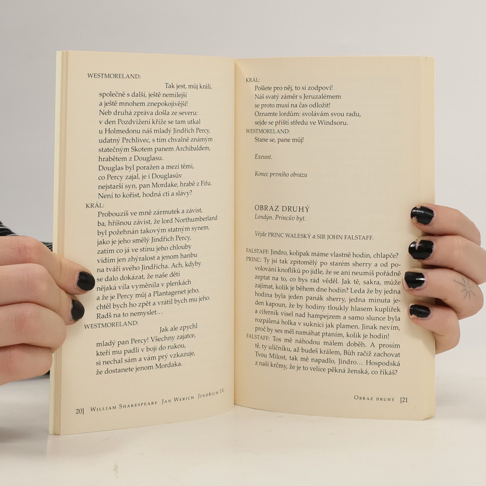 Pozoruhodná úprava stejnojmenné dvojdílné Shakespearovy historické hry, ve které Jan Werich konfrontuje příběh robustního renesančního a ne vždy zrovna mravného Jeníka Falstaffa s historií královského synka Jindřicha. Pro veršované partie použil překladu Jana Vladislava.