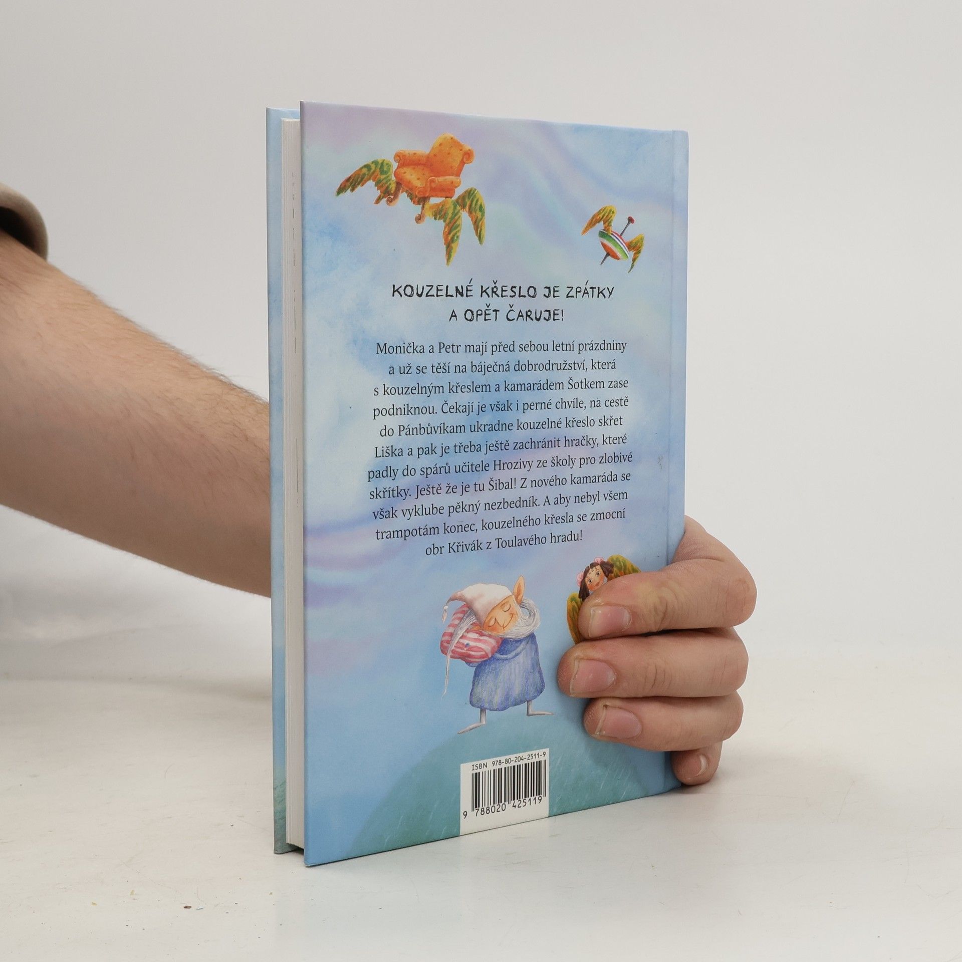 Monička a Petr jsou po půlroce ve škole zpátky doma. Před sebou mají dva měsíce prázdnin. Čeká na ně jejich kouzelné křeslo ještě? Čeká! A nemůže se dočkat, až s dětmi a Šotkem vyrazí za dalšími báječnými dobrodružstvími. Po cestě do Pánbůvíkam však kouzelné křeslo ukradne skřet Liška a děti ho získají zpátky jen s pomocí Zaklínače. Ani si pořádně nevydechnou a už se vydávají zachránit hračky, které padly do spárů učitele Hrozivy ze školy pro zlobivé skřítky. Ještě že je tu Šibal, který jim pomůže! Z nového kamaráda se však vyklube nezbedník, který jim připraví perné dny. A aby nebyl všem trampotám konec, kouzelného křesla se zmocní obr Křivák z Toulavého hradu! Ale od toho jsme v pohádce, aby nakonec všechno dobře dopadlo.