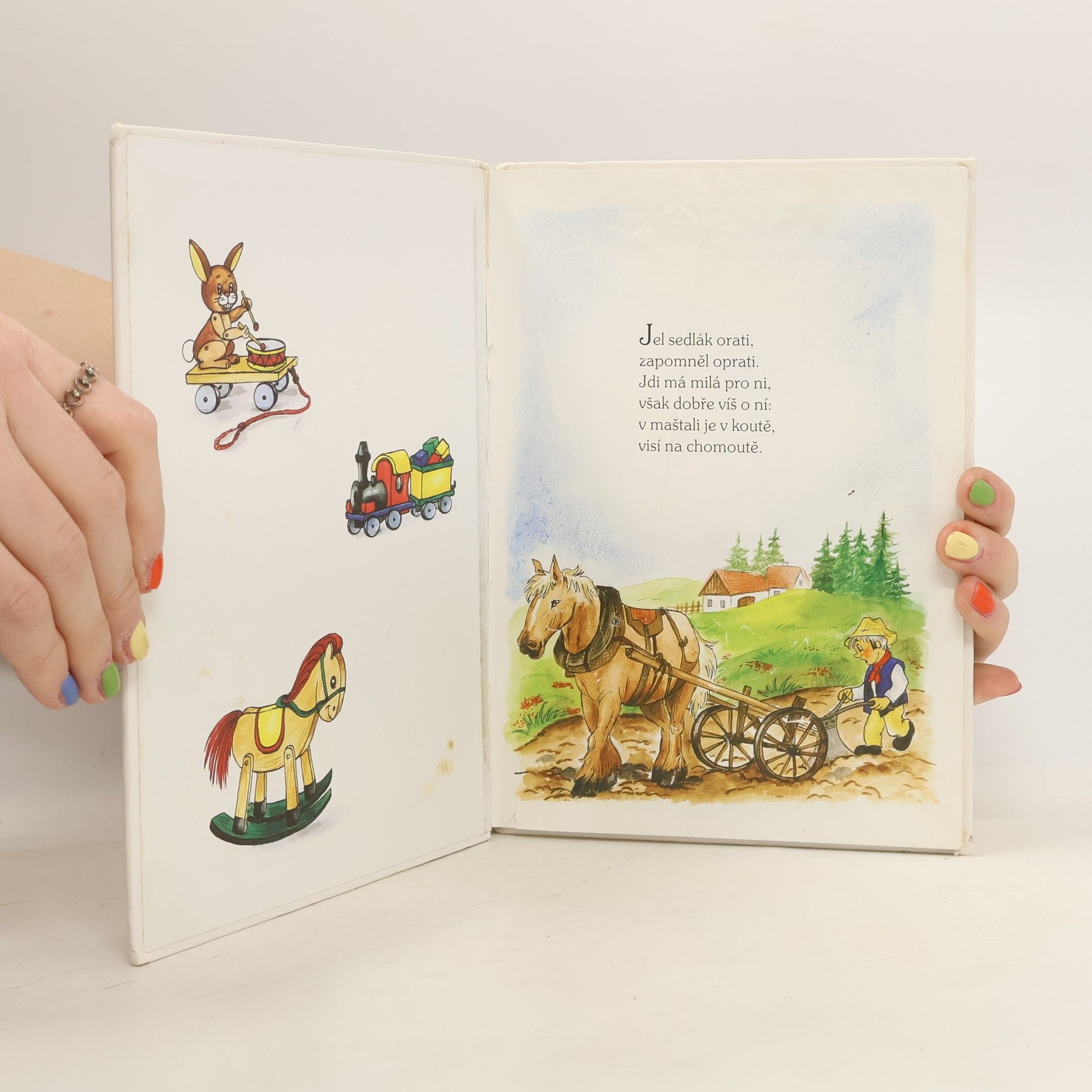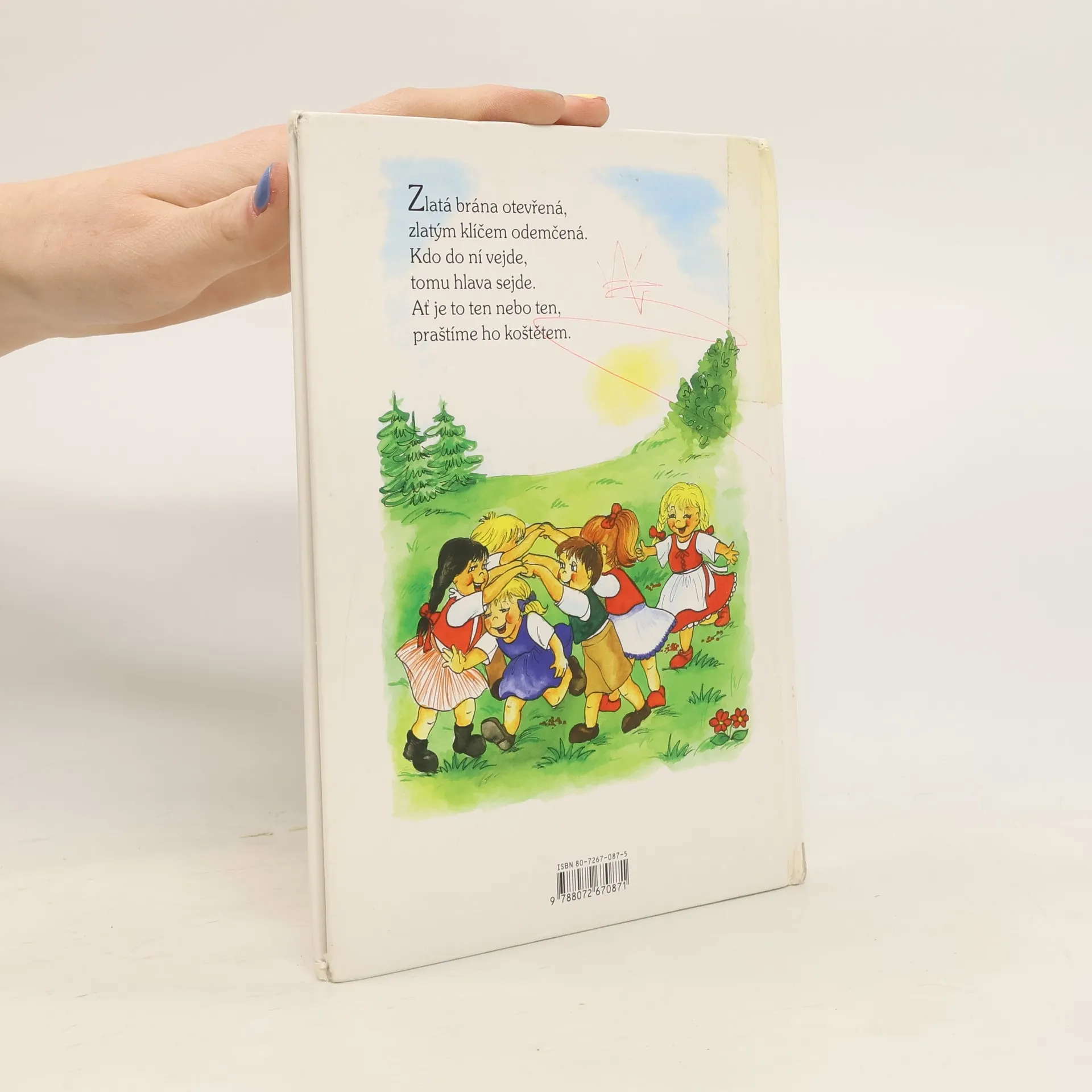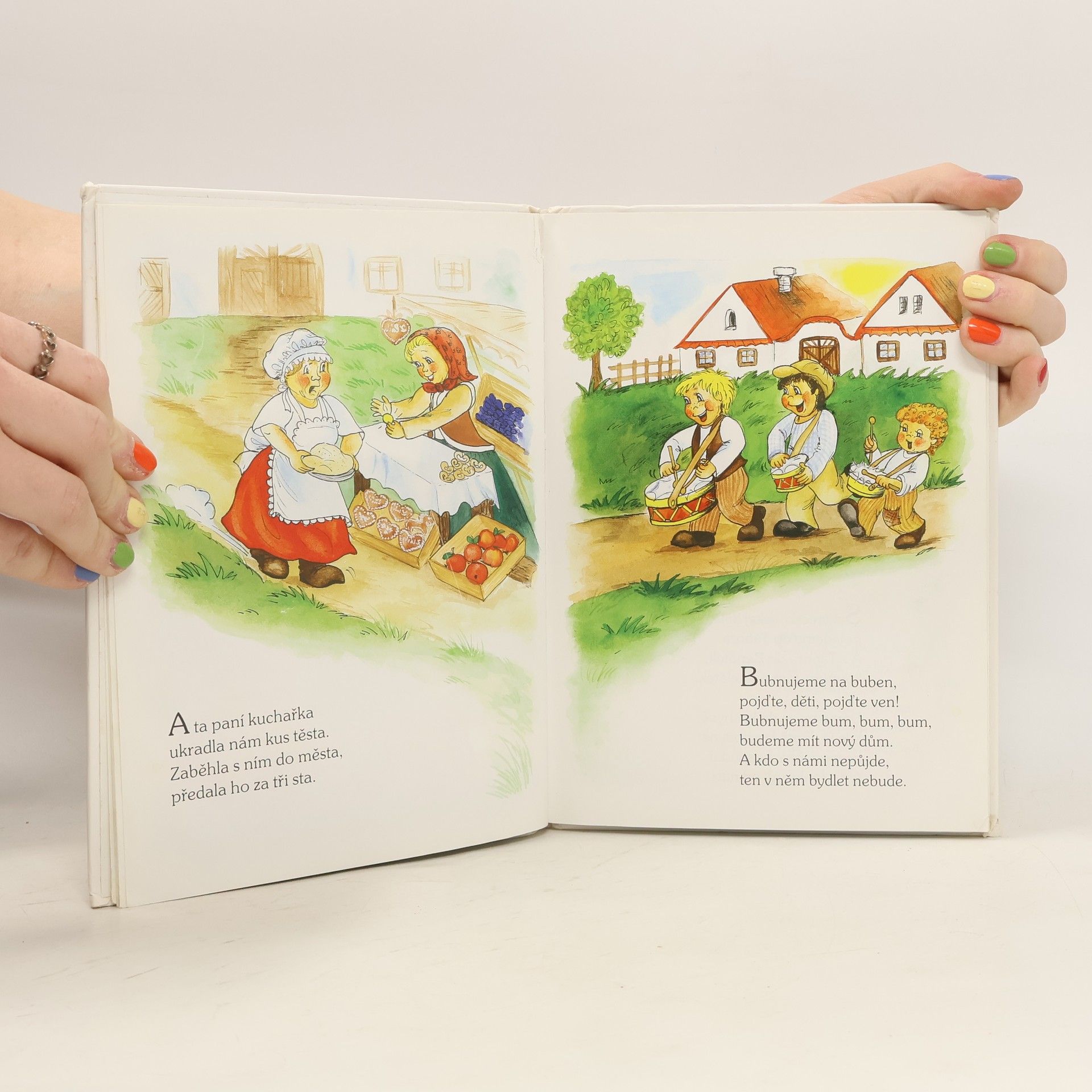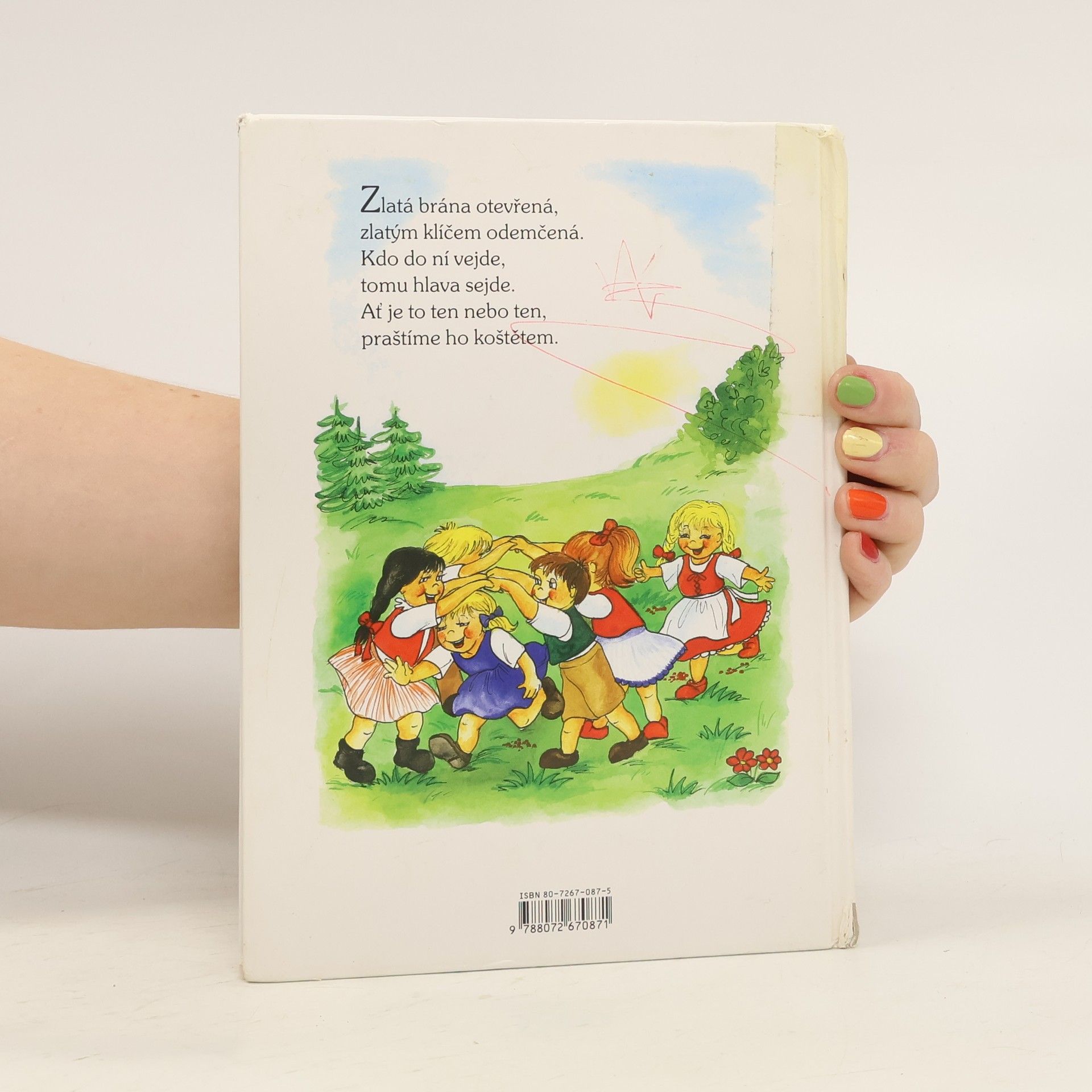 Zlatá brána otevřená, Vijte, vijte věnce, Žalovala žába žábě, Bubnujeme na buben... a další známá i pozapomenutá česká lidová říkadla, básničky, hry a rozpočitadla jsou doprovázena veselými obrázky Vladimíry Vopičkové. Knížka plná krátkých, lehce zapamatovatelných říkadel je určena našim nejmenším.