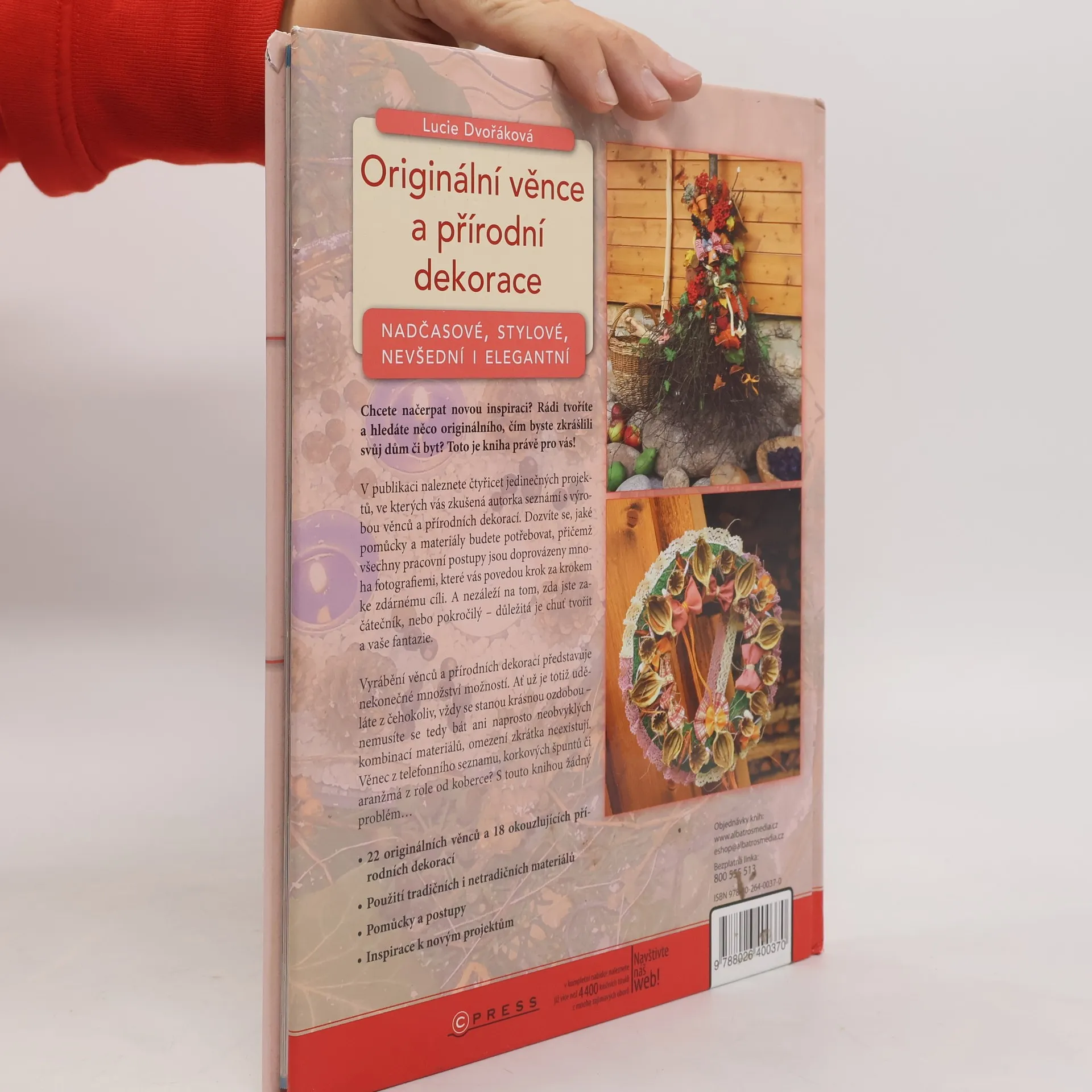Chcete načerpat novou inspiraci? Rádi tvoříte a hledáte něco originálního, čím byste zkrášlili váš dům či byt? Objevte svět přírodních materiálů!V této knize naleznete 40 projektů, ve kterých vás zkušená autorka seznámí s výrobou věnců a přírodních dekorací. Dozvíte se, jaké pomůcky a materiály budete potřebovat, přičemž všechny pracovní postupy jsou doprovázeny mnoha fotografiemi, které vás povedou krok za krokem ke zdárnému cíli.
