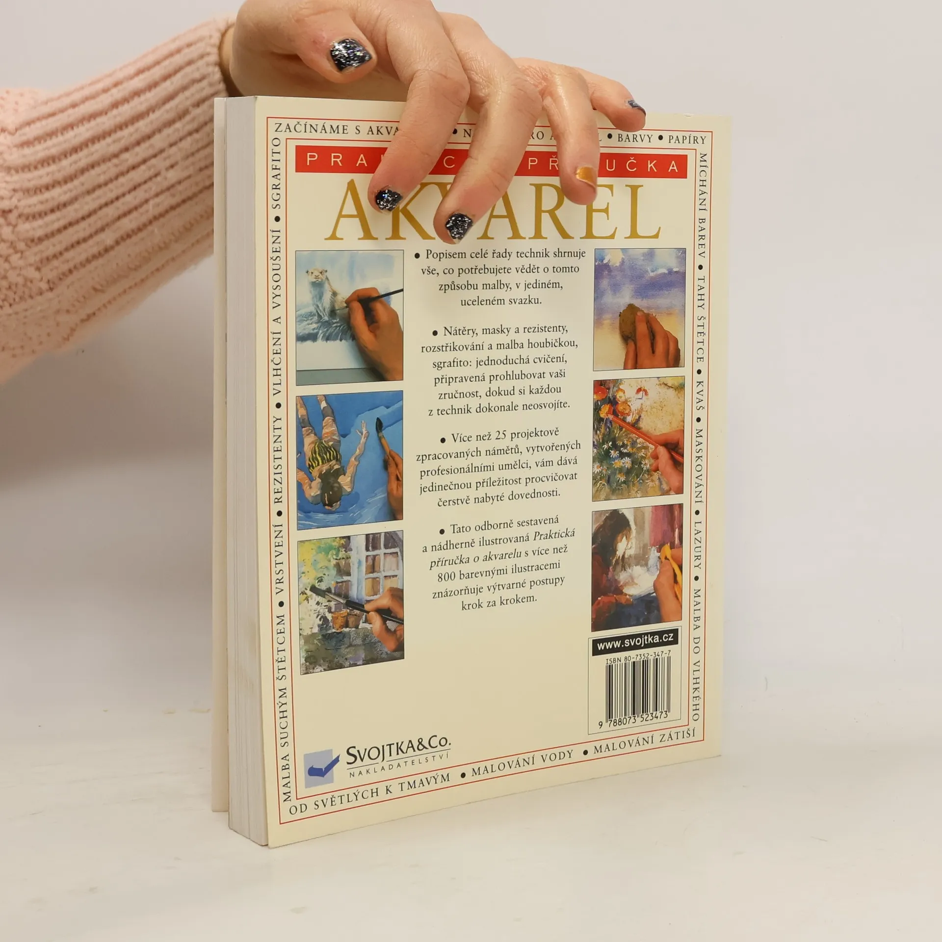 Praktická příručka popisuje nejrůznější techniky akvarelu a shrnuje vše, co potřebujete vědět o této technice, v jednom svazku. Více než 25 projektově zpracovaných námětů od profesionálních umělců vám dává možnost procvičovat si své dovednosti. Kniha je doplněná více než 800 barevnými ilustracemi znázorňujícími výtvarné postupy krok za krokem.